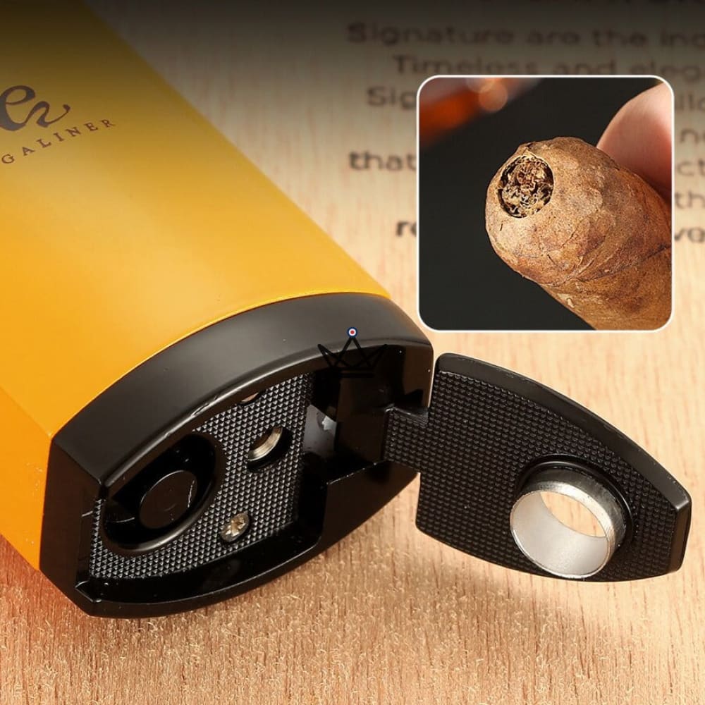 Ce briquet chalumeau est également équipé d'un poinçon à cigare pratique, vous permettant de percer vos cigares avec facilité et précision, pour une préparation parfaite avant l'allumage.