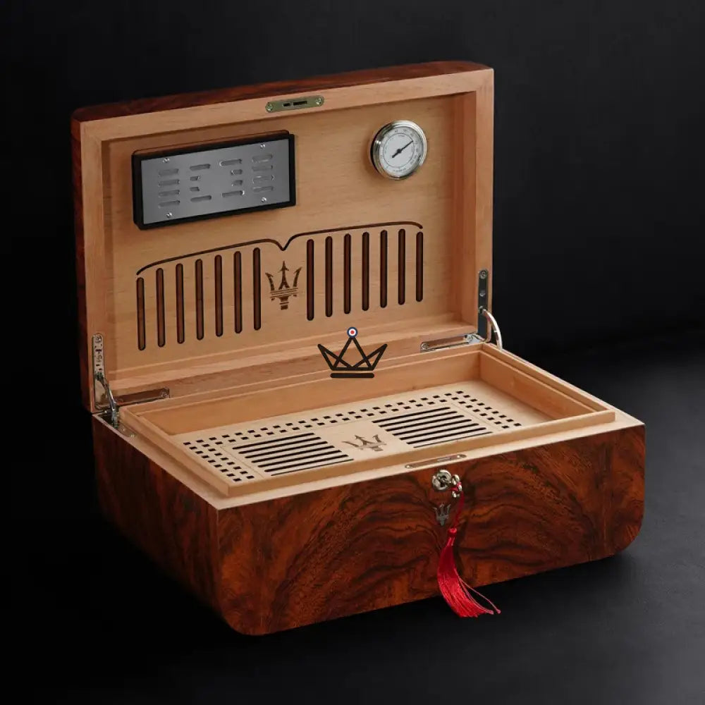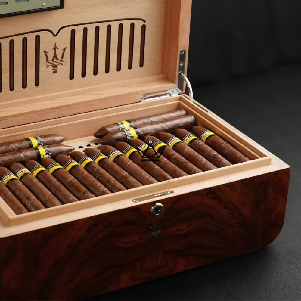 Chaque détail de la Poséidon Trident a été pensé pour le luxe et la commodité, des matériaux de qualité supérieure à la serrure sécurisée qui protège votre collection précieuse. C'est le choix ultime pour ceux qui recherchent une solution élégante pour stocker leurs cigares, garantissant que chaque dégustation est un événement mémorable.