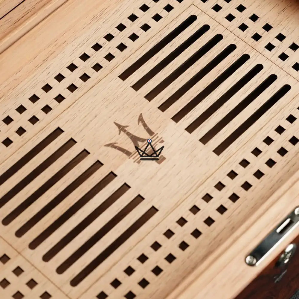 La cave à cigares Poséidon Trident est fabriquée en bois précieux et offre un intérieur spacieux qui peut accueillir une large sélection de cigares. Le système de contrôle de l'humidité intégré garantit que chaque cigare conservé dans le Poséidon Trident reste à son apogée de fraîcheur et de saveur, grâce à un hygromètre et un humidificateur de pointe qui maintiennent des conditions idéales.