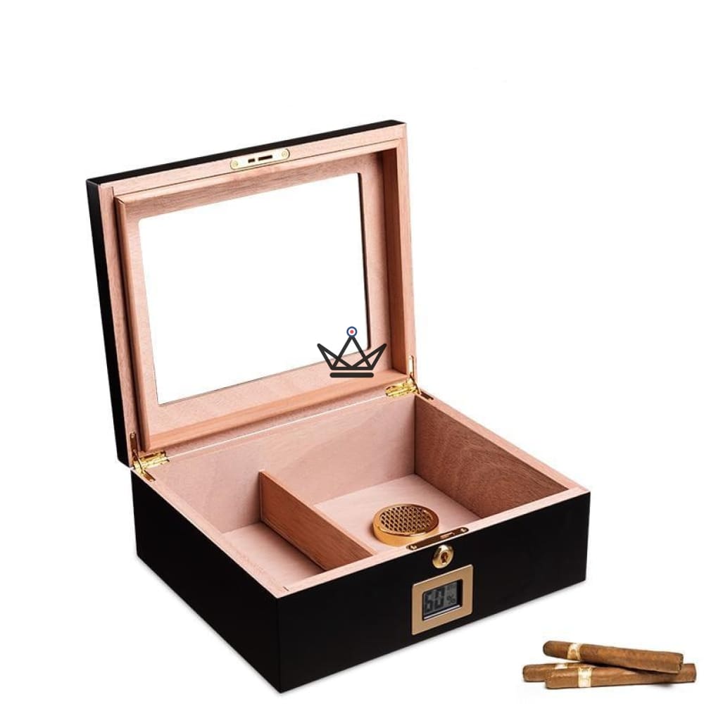 • Humidificateur à cristaux inclus : Maintient l'humidité à un niveau idéal pour préserver la qualité et la saveur de vos cigares.