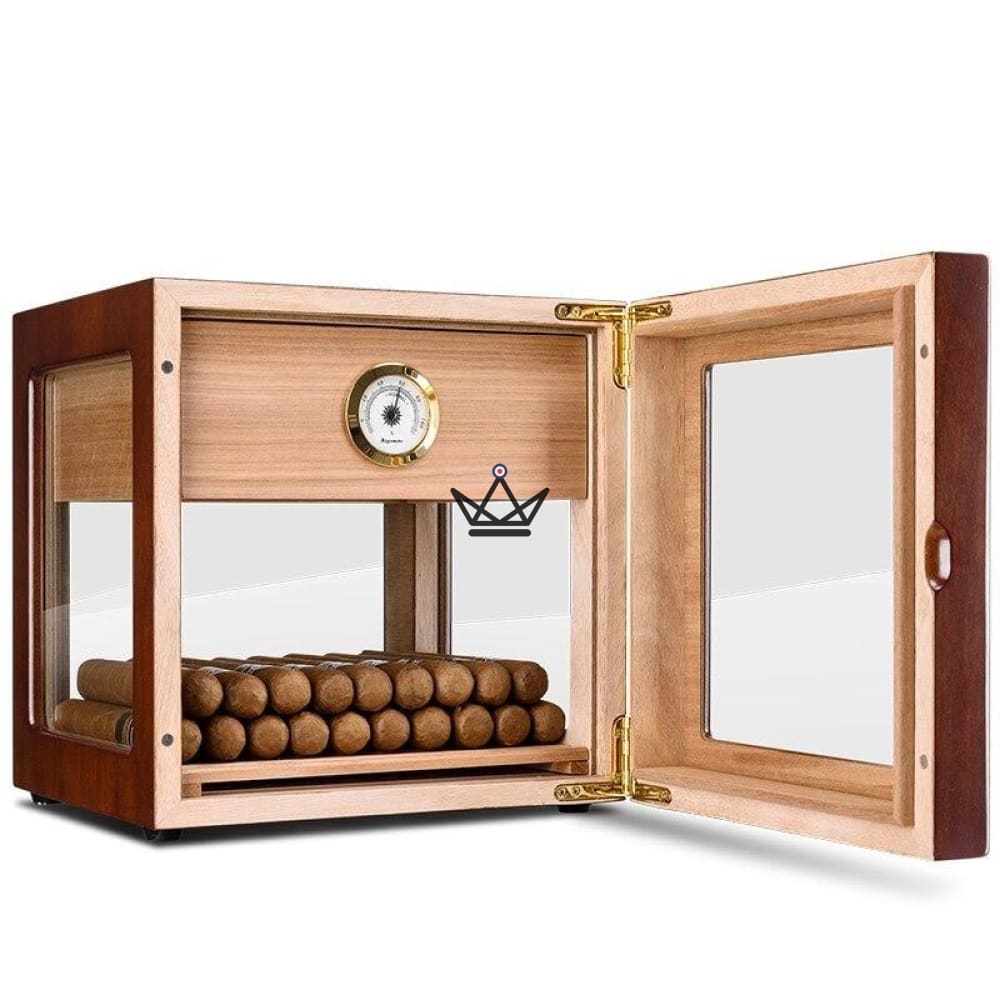 Cette cave à cigare est un véritable chef-d'œuvre visuel, avec ses cinq faces vitrées qui mettent en valeur votre collection de cigares. Elle deviendra une pièce maîtresse de votre espace dédié aux cigares, ajoutant une touche d'élégance et de sophistication.
