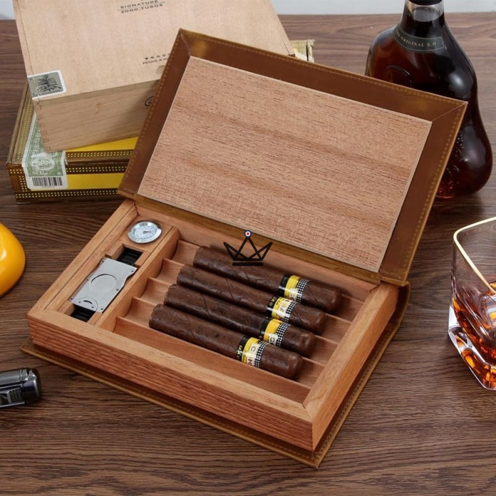 La cave à cigares cachette CUBA SECRET BOOK est un choix discret et subtil pour les amateurs de cigares qui apprécient l'élégance et la discrétion. Inspirée des célèbres livres cachettes Kavatza, cette boîte à cigares se fond parfaitement dans votre bibliothèque ou votre étagère, dissimulant astucieusement son véritable contenu.