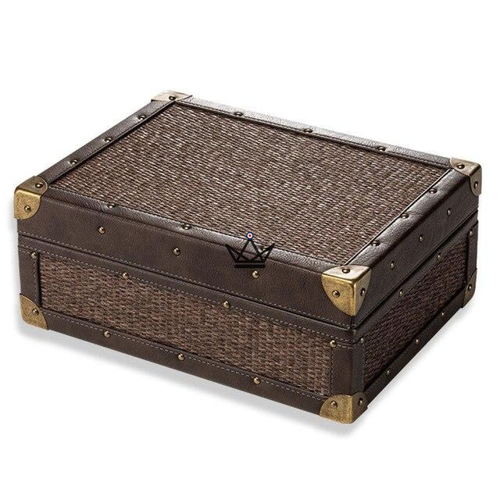 Le coffre à cigares ROTIN est un choix parfait pour les amateurs de cigares qui apprécient le charme de l'ancien et les tendances rustiques. Fabriqué en cuir de vachette avec des bandes tissées sur ses faces extérieures, ce coffre à cigares allie esthétique et fonctionnalité.