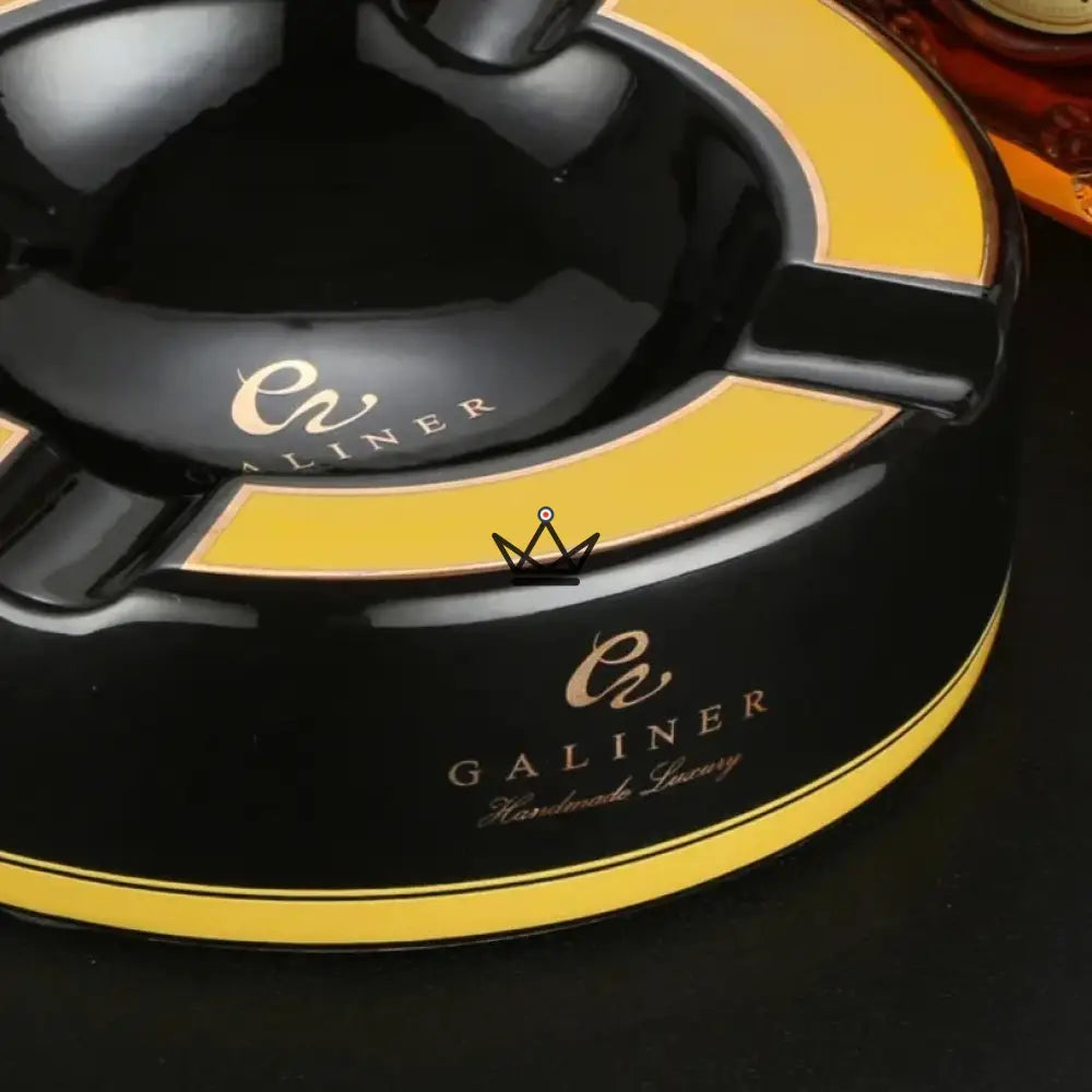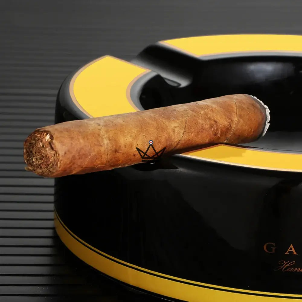 La fusion audacieuse du noir et du jaune confère à ce cendrier une allure dynamique, en parfaite adéquation avec les goûts exquis des aficionados. Le "Monolithe" n'est pas seulement un objet fonctionnel, mais une déclaration de style, qui trouve sa place dans les espaces les plus sophistiqués.