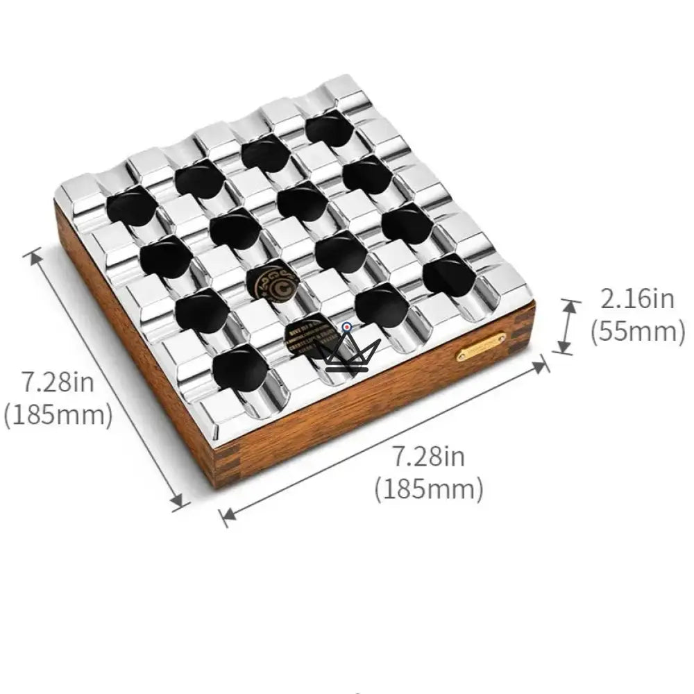 Le Cendrier de Luxe pour Cigare - Prisme Prestige allie élégance et fonctionnalité pour offrir une expérience de fumage incomparable. Fabriqué avec une base en bois massif et une surface en alliage d'aluminium, ce cendrier est conçu pour les amateurs de cigares qui apprécient le luxe et le design innovant.