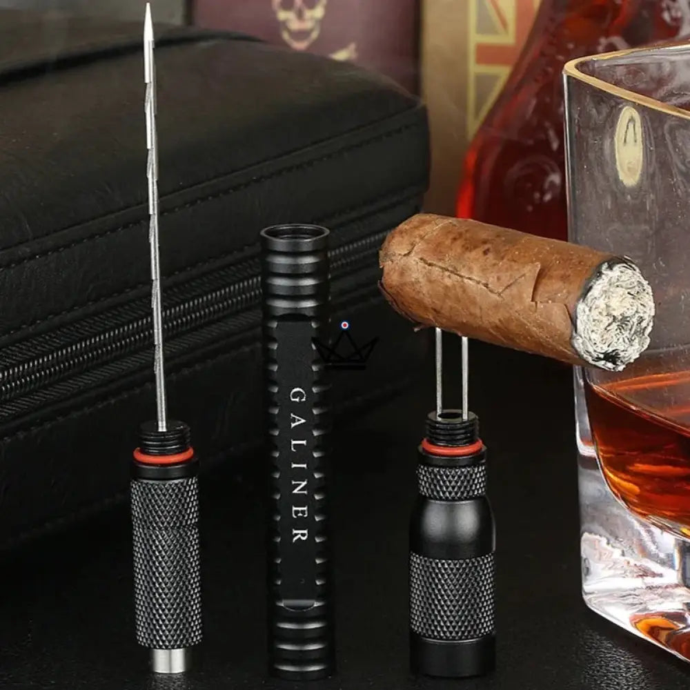 Ce précieux instrument, équipé d'une mini lame en acier inoxydable, offre une solution parfaite pour l'aération des cigares trop serrés ou le débouchage de ceux qui présentent des nœuds, tout en préservant leur saveur unique. Grâce à sa conception minutieuse, le Draw permet de retirer avec précision le tabac excédentaire, améliorant ainsi le tirage de votre cigare.