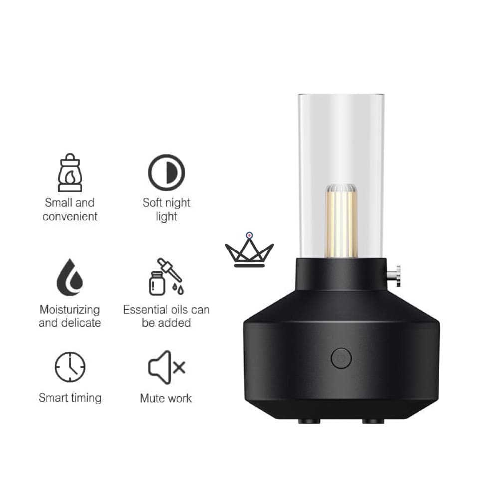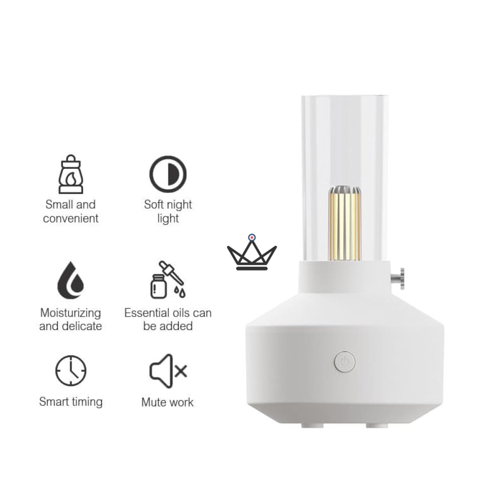 La forme élégante et épurée du diffuseur rappelle les anciennes lampes à pétrole, avec un design moderne et sophistiqué. Son format compact de 10.710.718cm (D4.2 po * H7.08 po) lui permet de s'intégrer facilement à votre décoration intérieure.