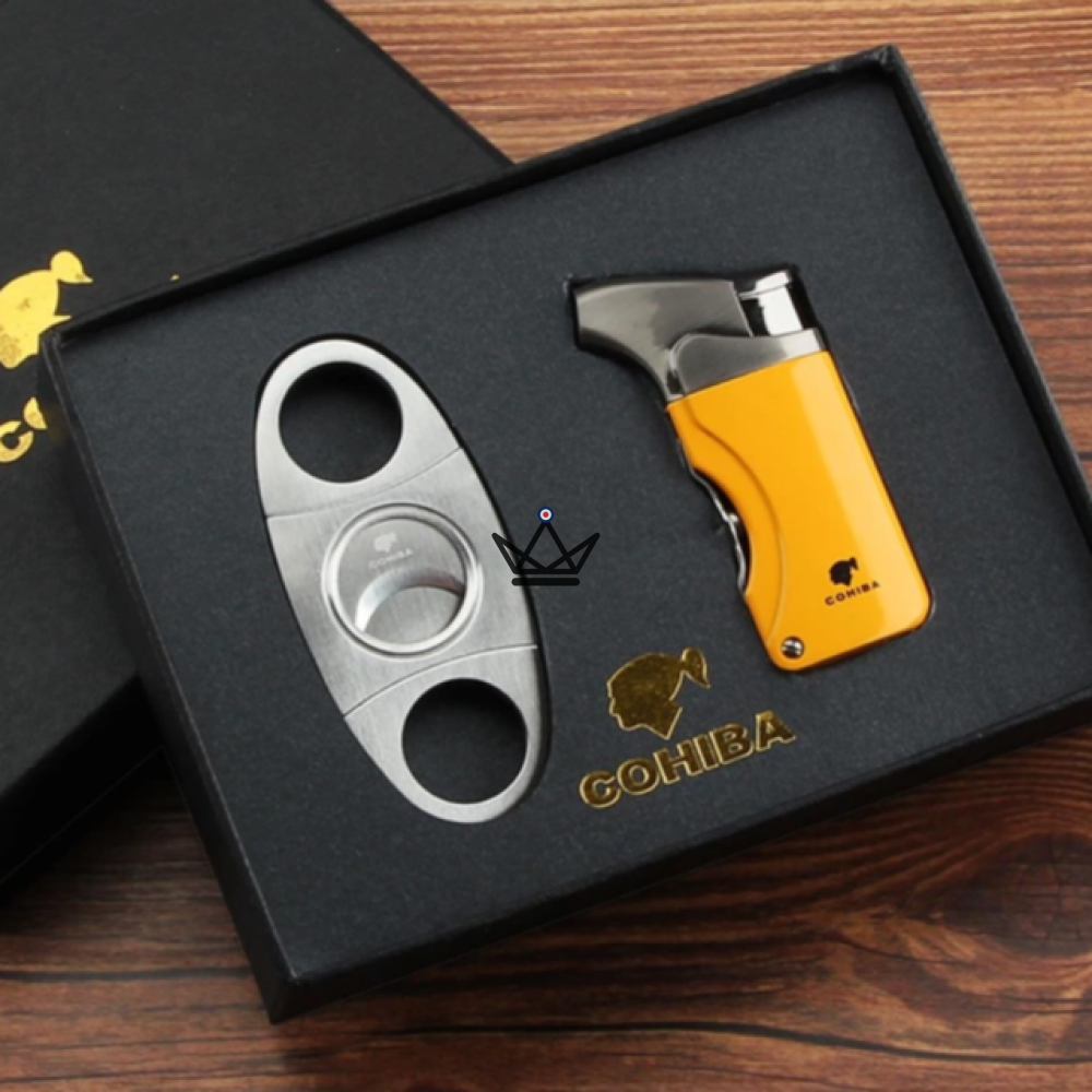 • Briquet selon pack choisir : briquet chalumeau 2 torches rechargeable avec poinçons à cigare