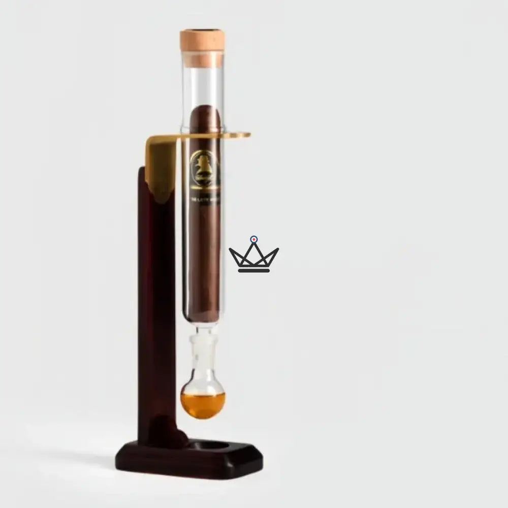 Il suffit de placer un cigare dans le tube en verre et de remplir le petit réservoir situé à la base avec un liquide aromatique (whisky, miel, brandy, etc.). Le cigare est ensuite subtilement parfumé grâce à l’infusion indirecte.