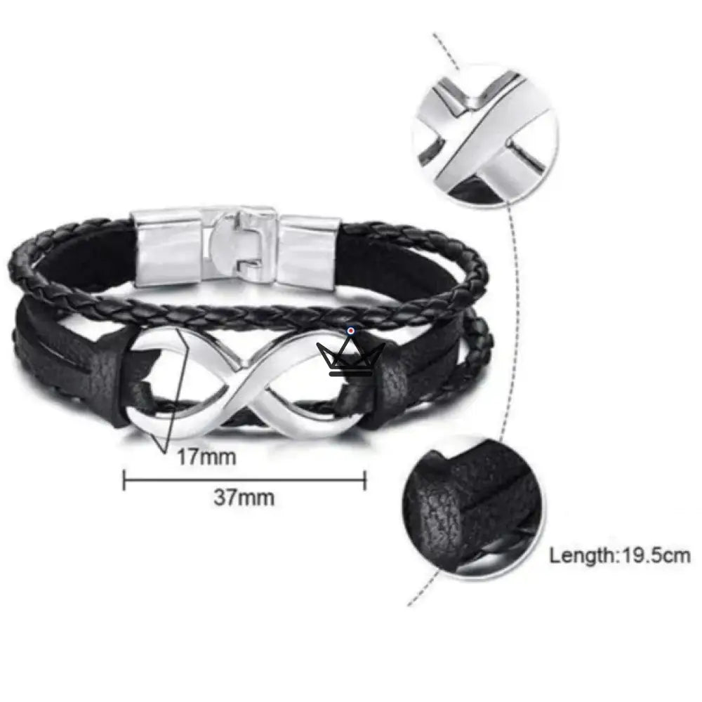 Le bracelet Infinite est un accessoire symbolique et élégant qui ajoute une touche de signification à votre poignet. Il est conçu avec un bracelet en cuir de haute qualité, mettant en valeur le signe de l'infini en métal.