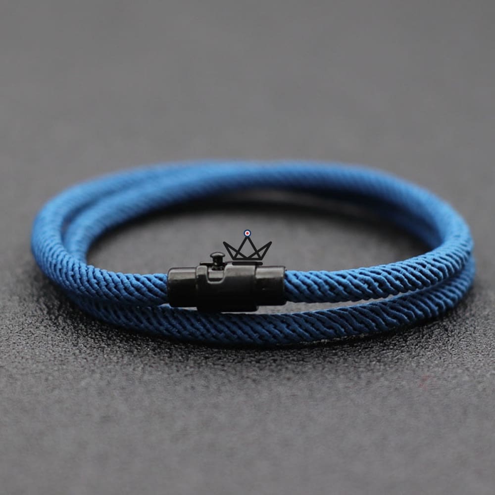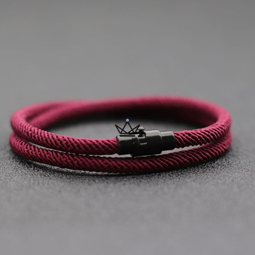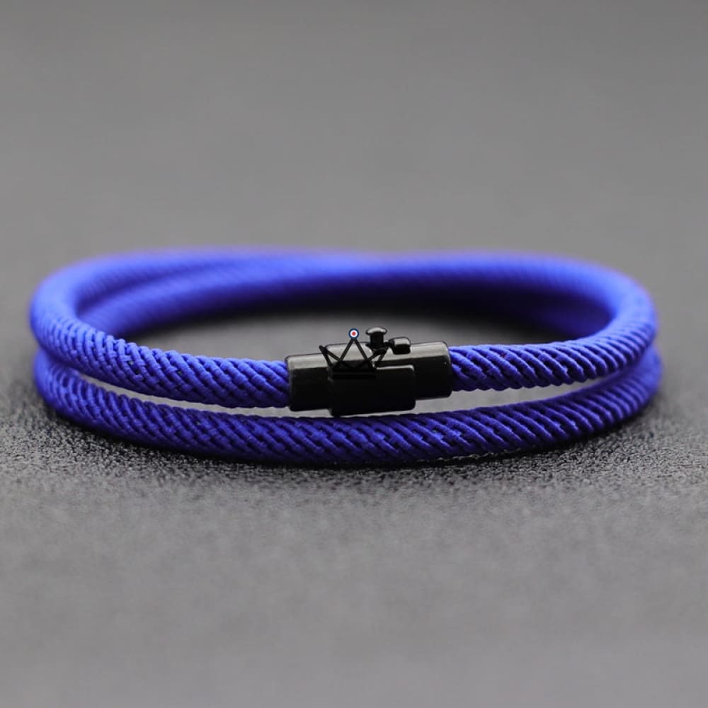 Le fermoir du bracelet est fabriqué en métal garantissant à la fois solidité et durabilité. Quant au bracelet lui-même, il est composé d'un cordage de qualité, offrant à la fois légèreté et résistance.