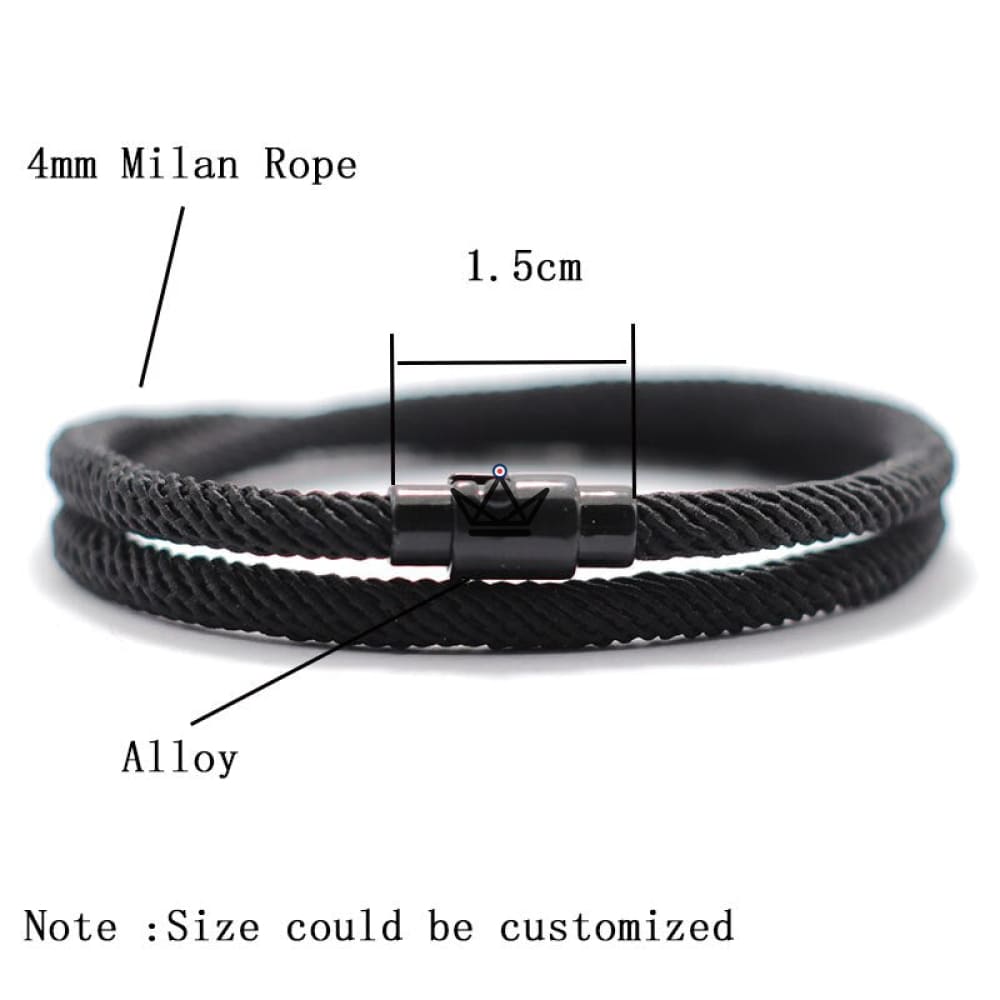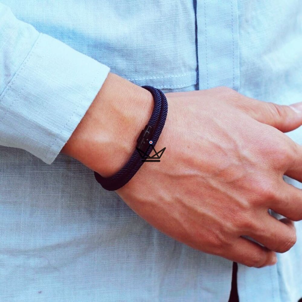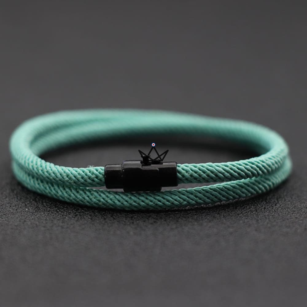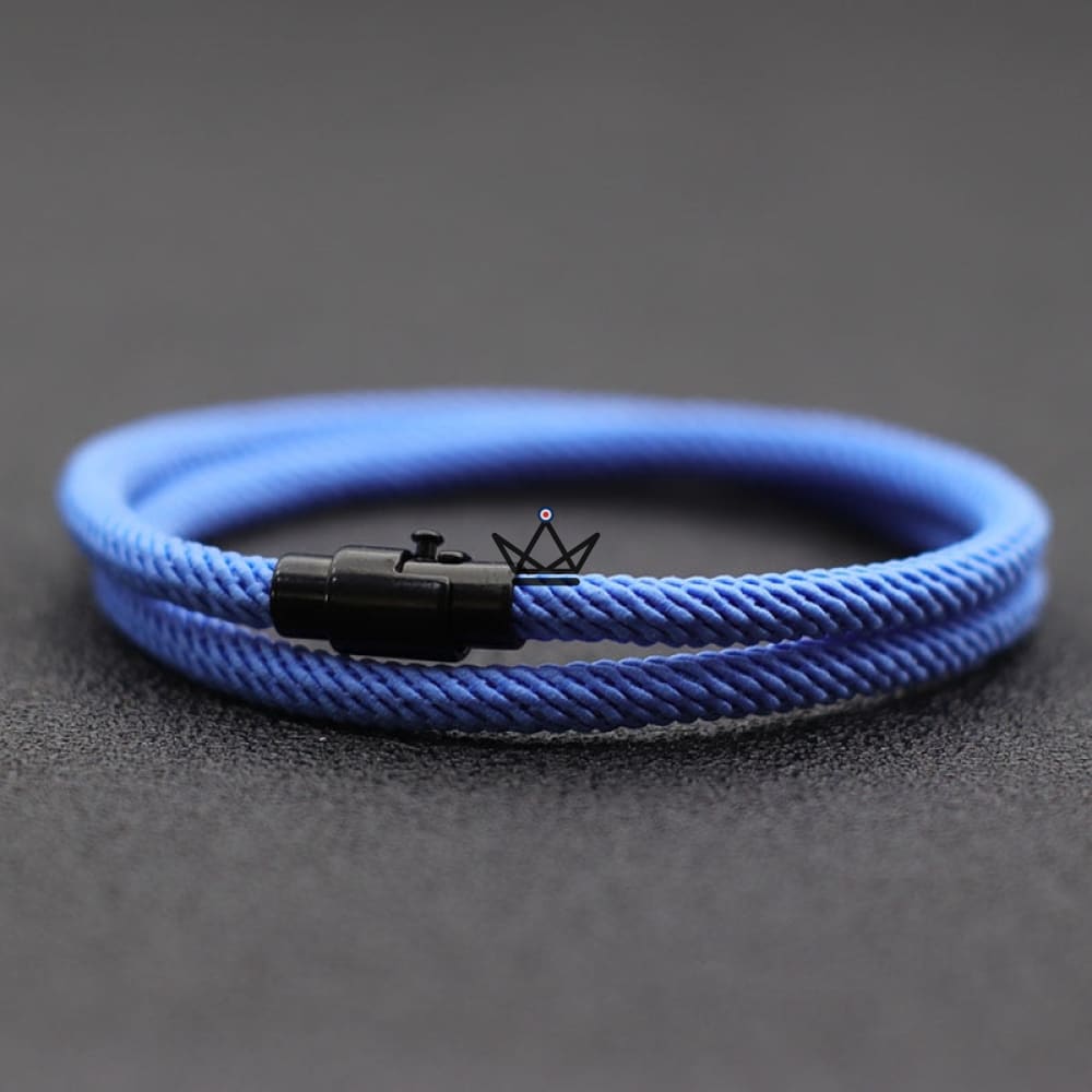 Le fermoir du bracelet est fabriqué en métal garantissant à la fois solidité et durabilité. Quant au bracelet lui-même, il est composé d'un cordage de qualité, offrant à la fois légèreté et résistance.