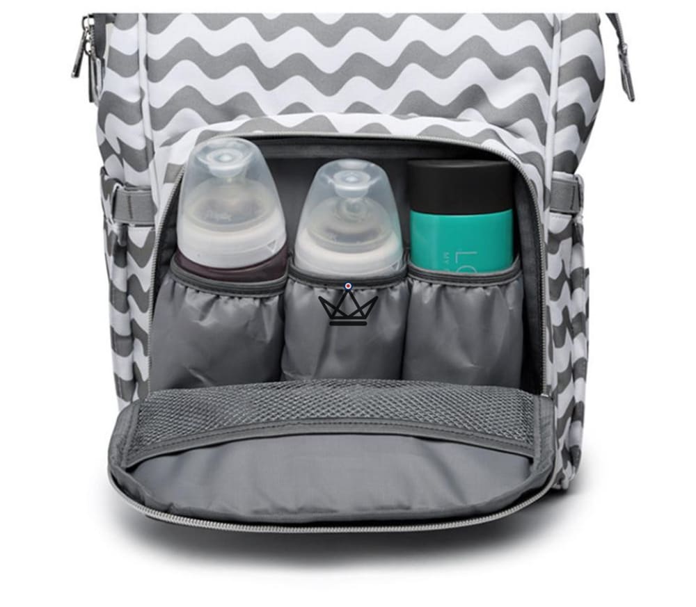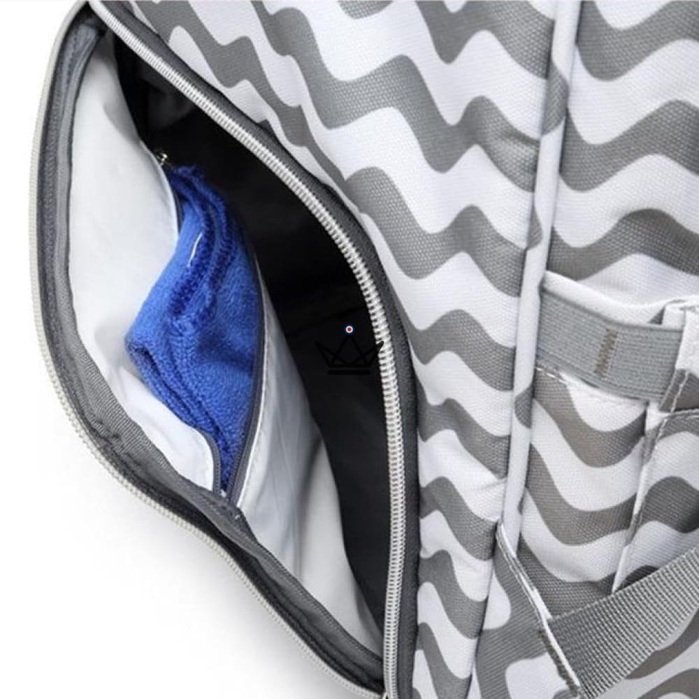 Il est composé de plusieurs poches très pratiques, permettant de transporter tout le nécessaire au bien être de votre enfant (couches, biberon, serviette, jouet...) !
