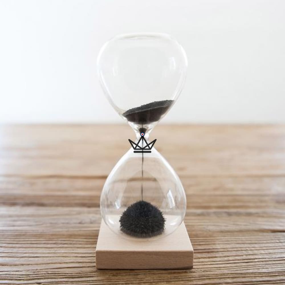 Eine magnetische Sanduhr, die vor Ihren Augen vergängliche Skulpturen schafft, deren magnetische Basis mit den kleinen Eisensandkörnern spielt.