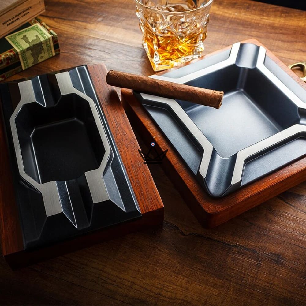 Bestehend aus einem Massivholzsockel von außergewöhnlicher Qualität, verbunden mit einer Stahlstütze, sind diese sorgfältig hergestellten Aschenbecher echte Dekorationsobjekte.
