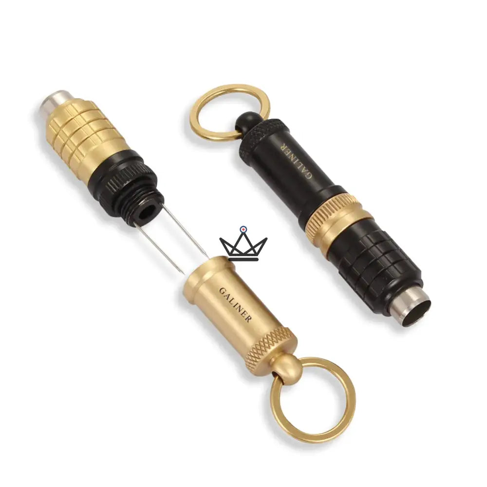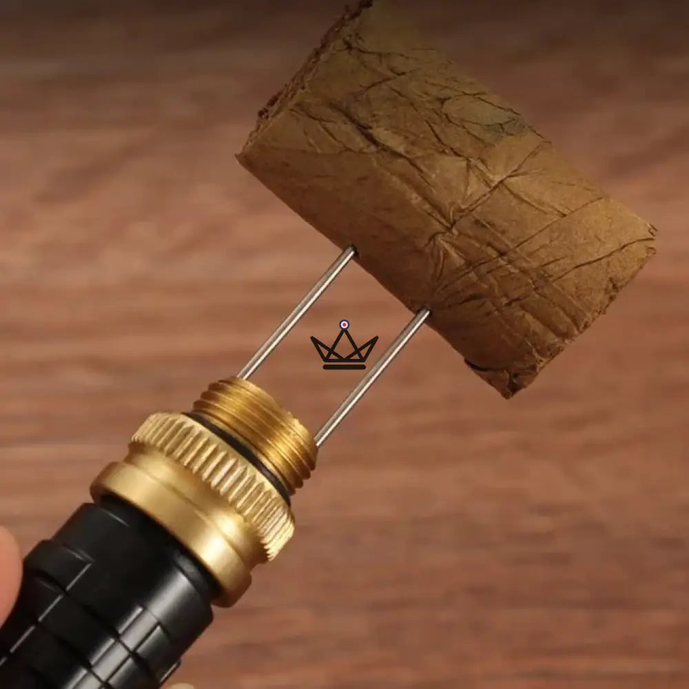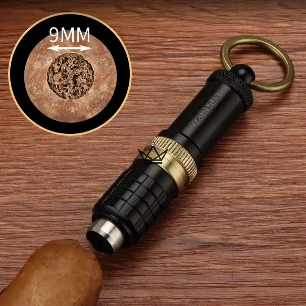 Dieser Punch ist viel mehr als nur ein Instrument, er enthält auch einen innovativen Nadel-Zigarrenhalter, der Ihre Zigarre elegant an Ort und Stelle hält und gleichzeitig ihre Struktur und Integrität bewahrt.