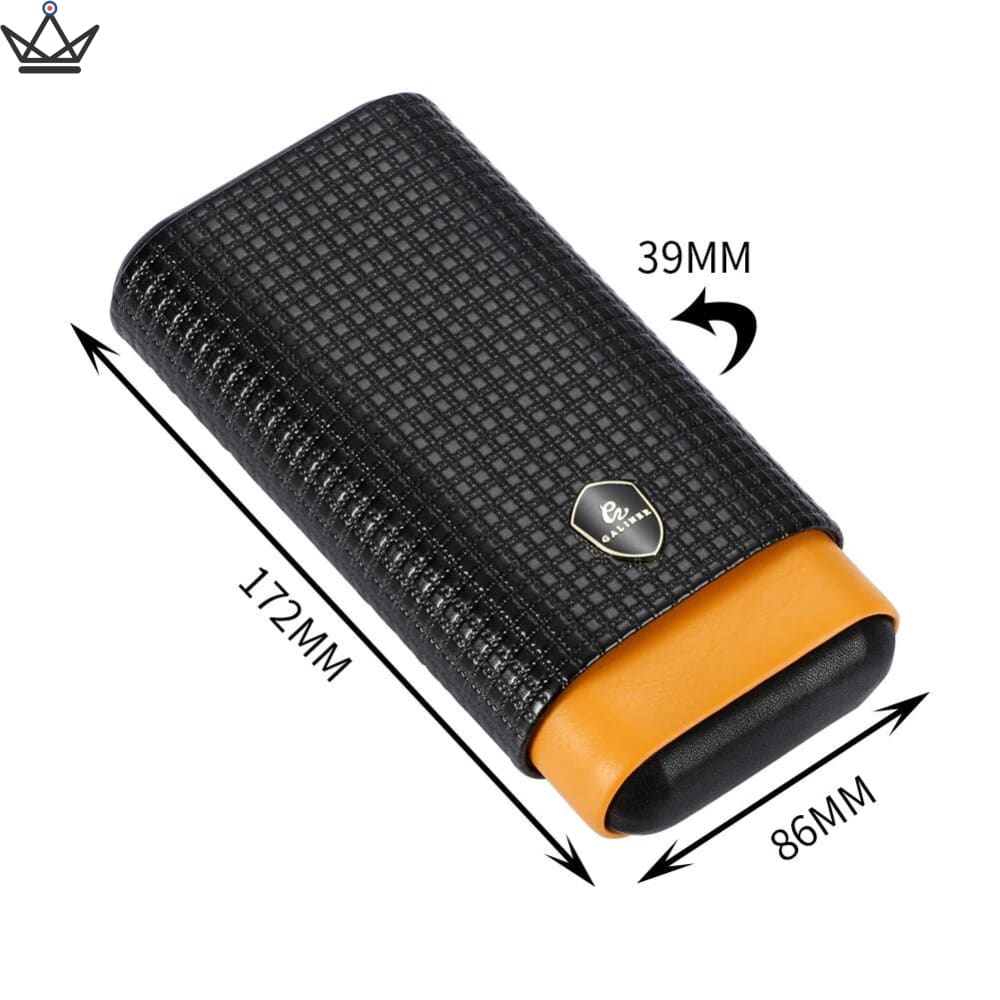 Dieses robuste und langlebige Material aus Rindsleder bietet zusätzlichen Schutz vor Stößen und Feuchtigkeit und sorgt dafür, dass die Qualität Ihrer Zigarren erhalten bleibt. Die Abmessungen des Koffers betragen 18 x 9 x 3,2 cm, wodurch er kompakt und bequem zu tragen ist.