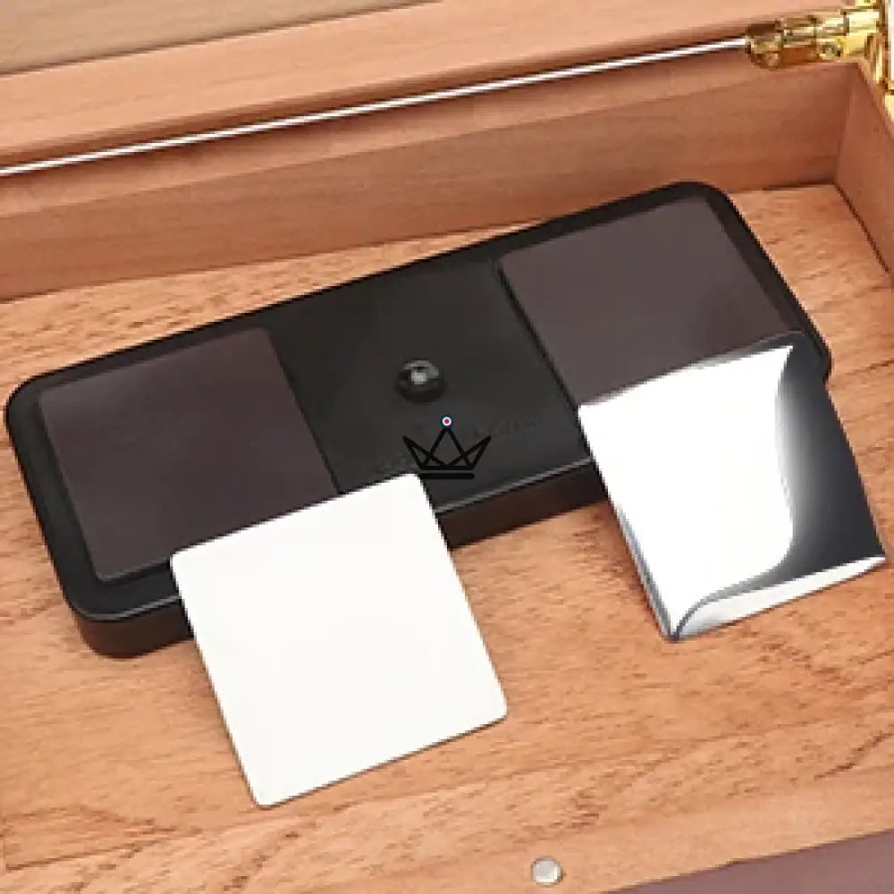 Mit kompakten Maßen von 13 cm x 5 cm passt der OASIS S100 perfekt in die meisten Zigarren-Humidore. Es ist mit zwei starken Magneten ausgestattet, die eine einfache und sichere Befestigung in Ihrem Keller ermöglichen, ohne dass die Gefahr einer versehentlichen Bewegung besteht.
