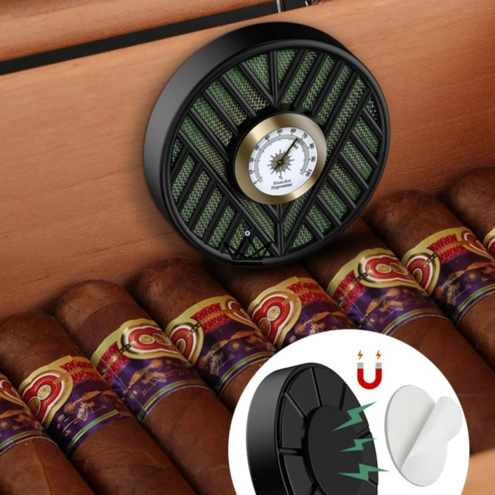 Der Luftbefeuchter Oasis Vortex ist von den natürlichen und harmonischen Luftbewegungen inspiriert und vereint elegantes Design und optimale Leistung. Dieser Humidor-Luftbefeuchter sorgt mit seinem zentral integrierten Hygrometer für eine präzise Luftfeuchtigkeitskontrolle und erleichtert so die Überwachung der Luftfeuchtigkeit. Es wurde entwickelt, um Ihre Zigarren unter idealen Bedingungen aufzubewahren und ihre Frische zu bewahren.