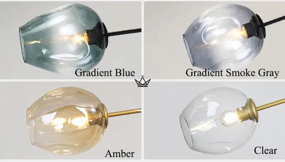 Unsere Glaskugeln sind mit vier verschiedenen Farbtönen anpassbar und in verschiedenen Ausführungen erhältlich, um zu allen Innenräumen und jedem Ambiente zu passen. Transparent für ein klares und brillantes Licht, Amber für eine warme Atmosphäre, Gradient Smoke und Gradient Blue für einen subtilen und raffinierten Farbtupfer.