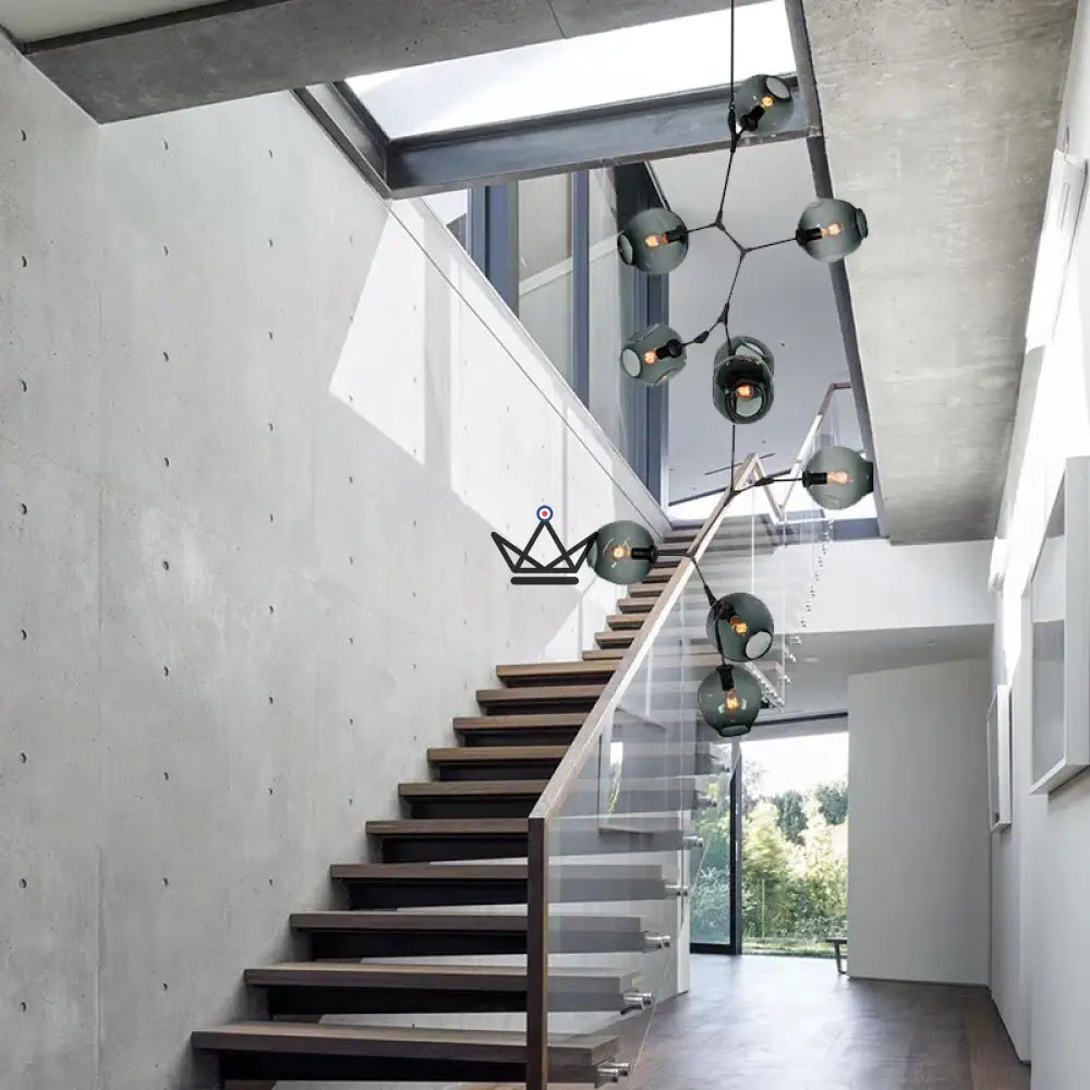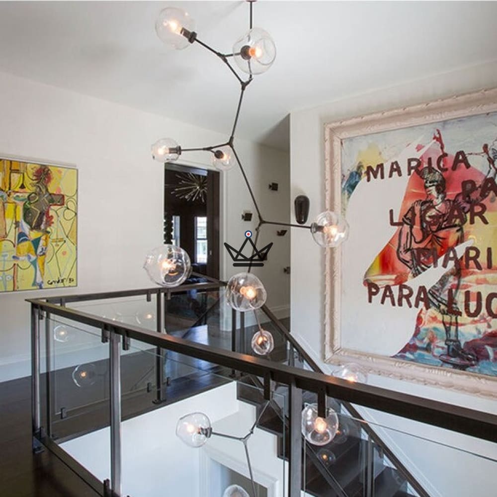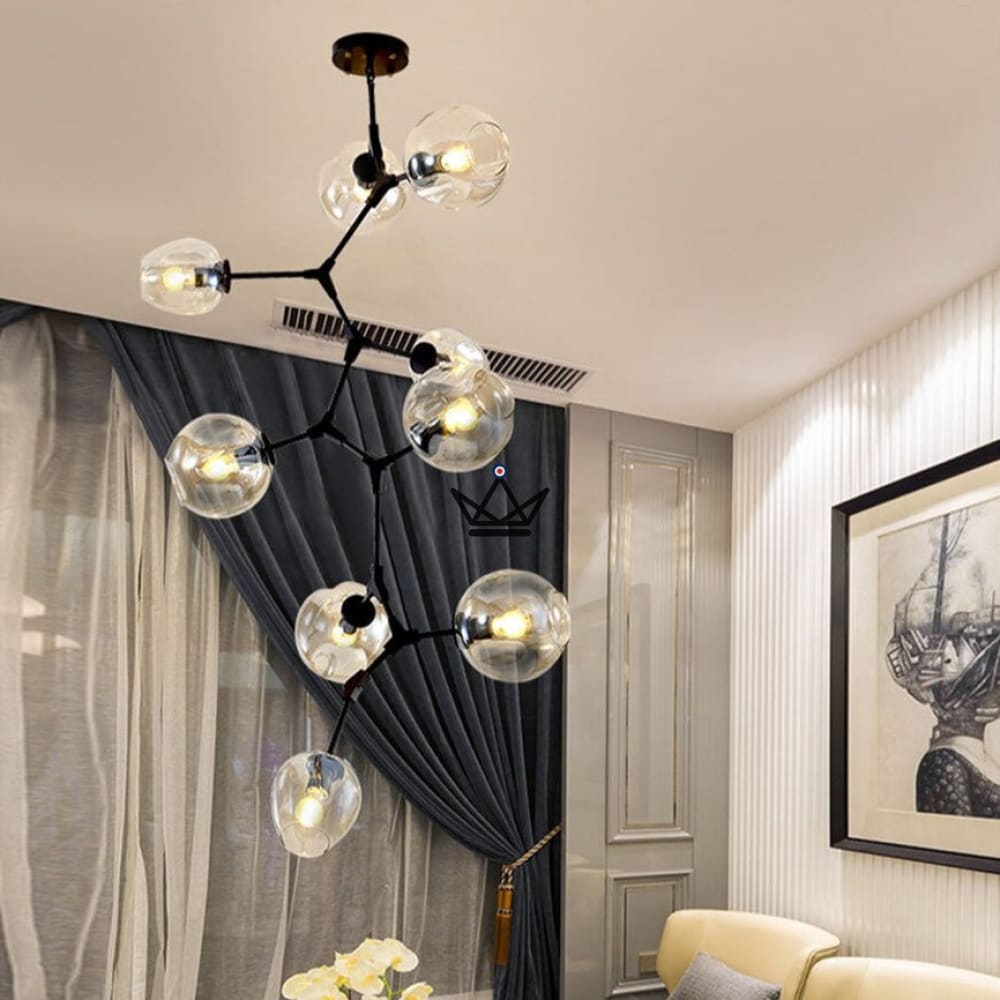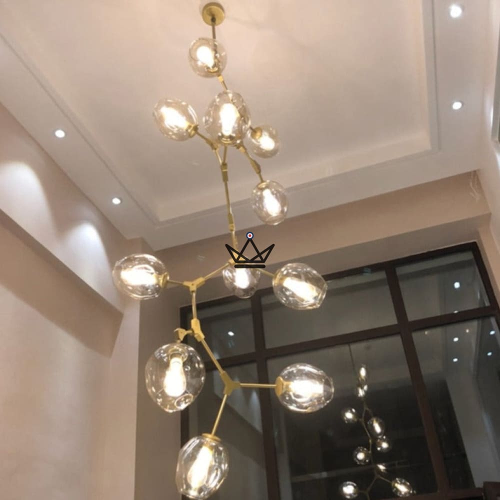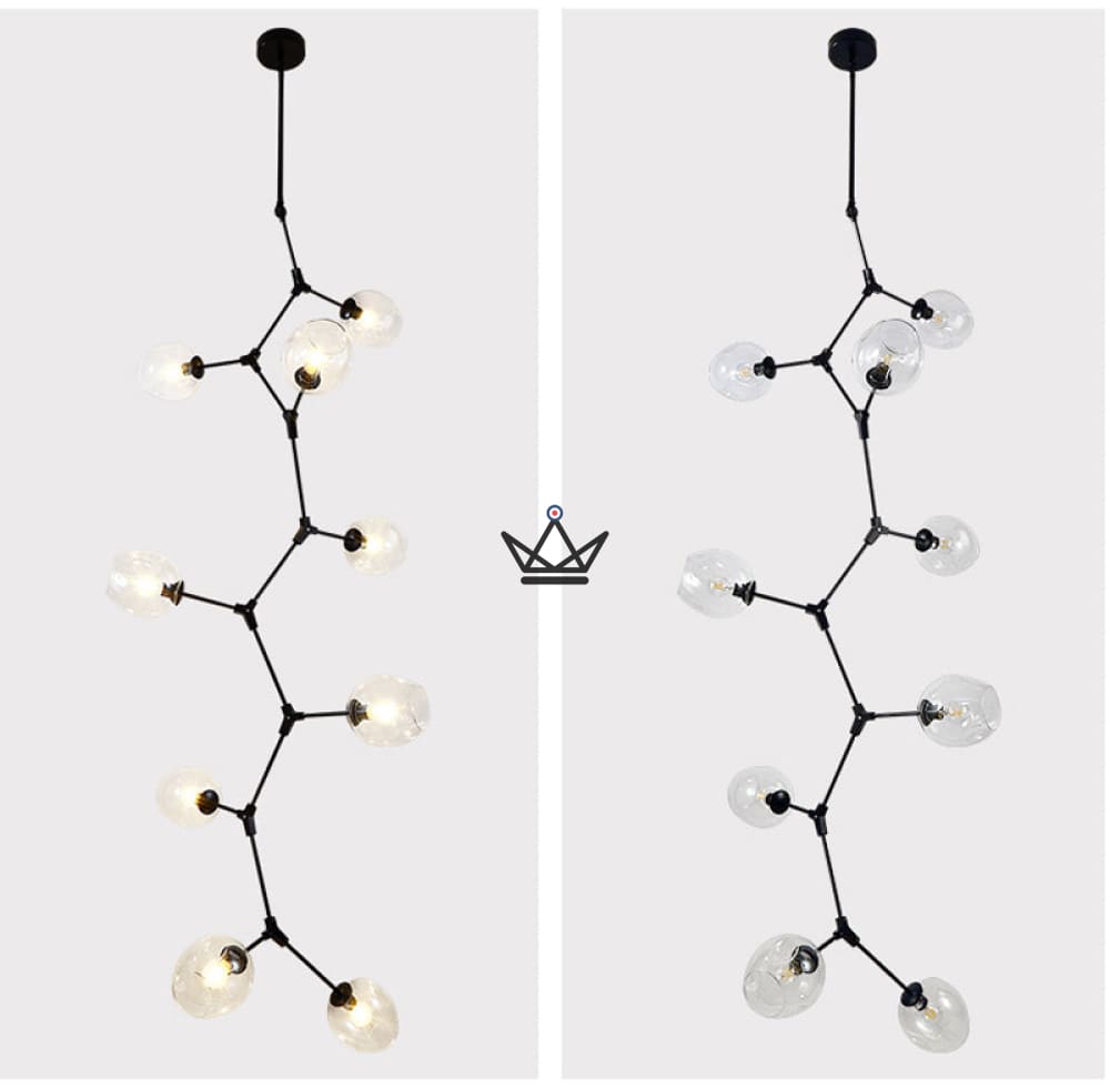 Der vertikale industrielle Deckenleuchter mit Gelenkfunktion – Branching Bubble Vertigo ist ein Statement-Stück, das Kunst und Funktionalität vereint. Dieses einzigartige Beleuchtungsstück ist von der natürlichen Struktur eines Astes inspiriert und verwandelt einen gewöhnlichen Raum in eine schillernde Szene aus Licht und Schatten.