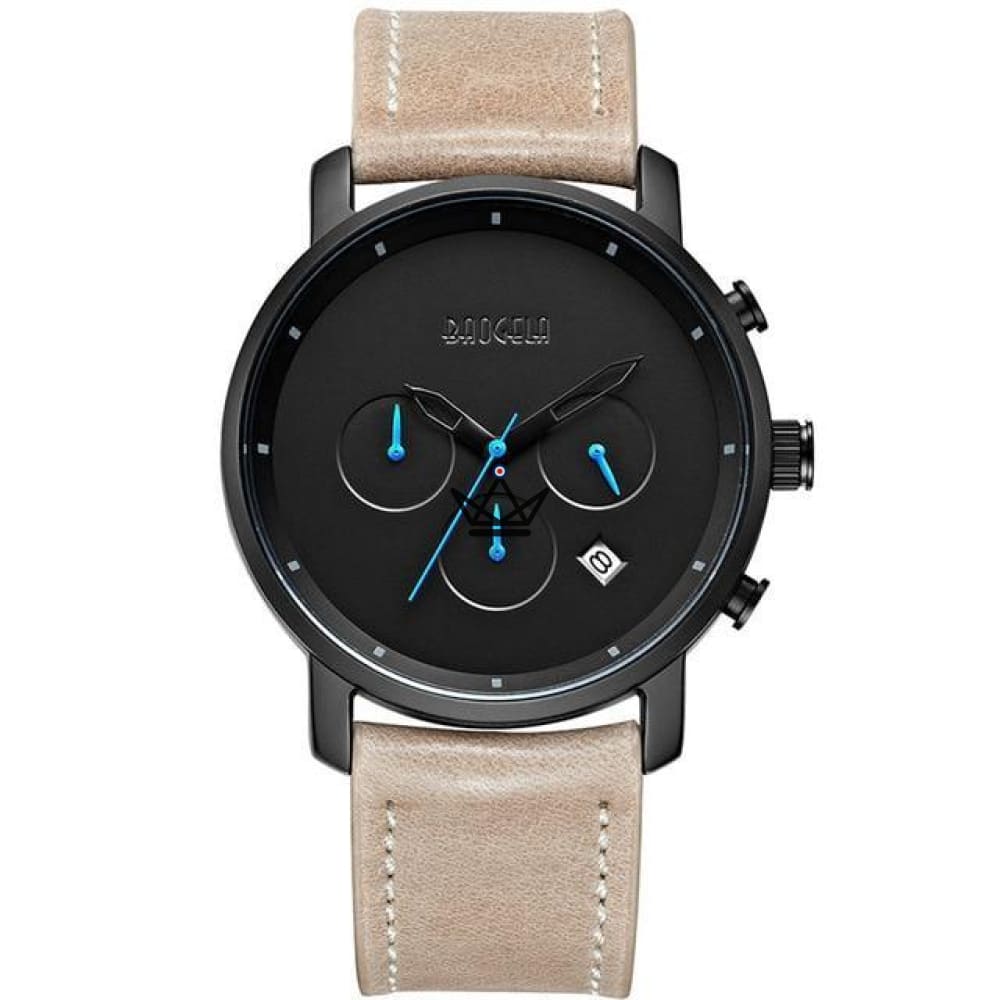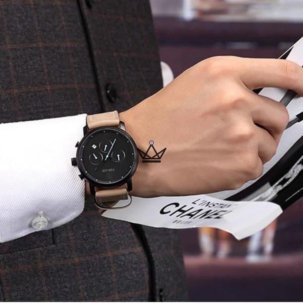 Diese Uhr mit Lederarmband zeichnet sich durch ihr edles und modernes Design aus.