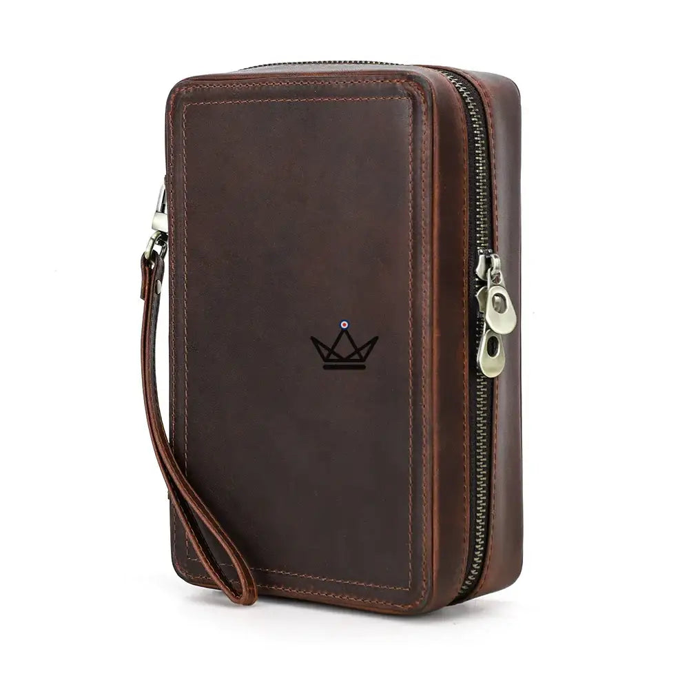 Dieses handgefertigte Meisterwerk mit großzügigen Maßen von 21 × 13,5 × 7 cm wurde mit viel Liebe zum Detail für ernsthafte Zigarrenliebhaber entworfen. Sein robustes Design verspricht einen unübertroffenen Schutz und eine Alterung des Leders, die seinen Charakter mit der Zeit nur noch verstärken wird.