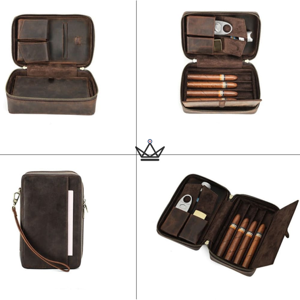Das Design des Gehäuses ist sowohl elegant als auch funktional. Es ist so konzipiert, dass es problemlos in Ihr Gepäck oder Ihre Umhängetasche passt und Sie es überallhin mitnehmen können. Die Verwendung von echtem Leder verleiht dem Etui eine hochwertige und langlebige Haptik und sorgt für optimalen Schutz Ihrer Zigarren.
