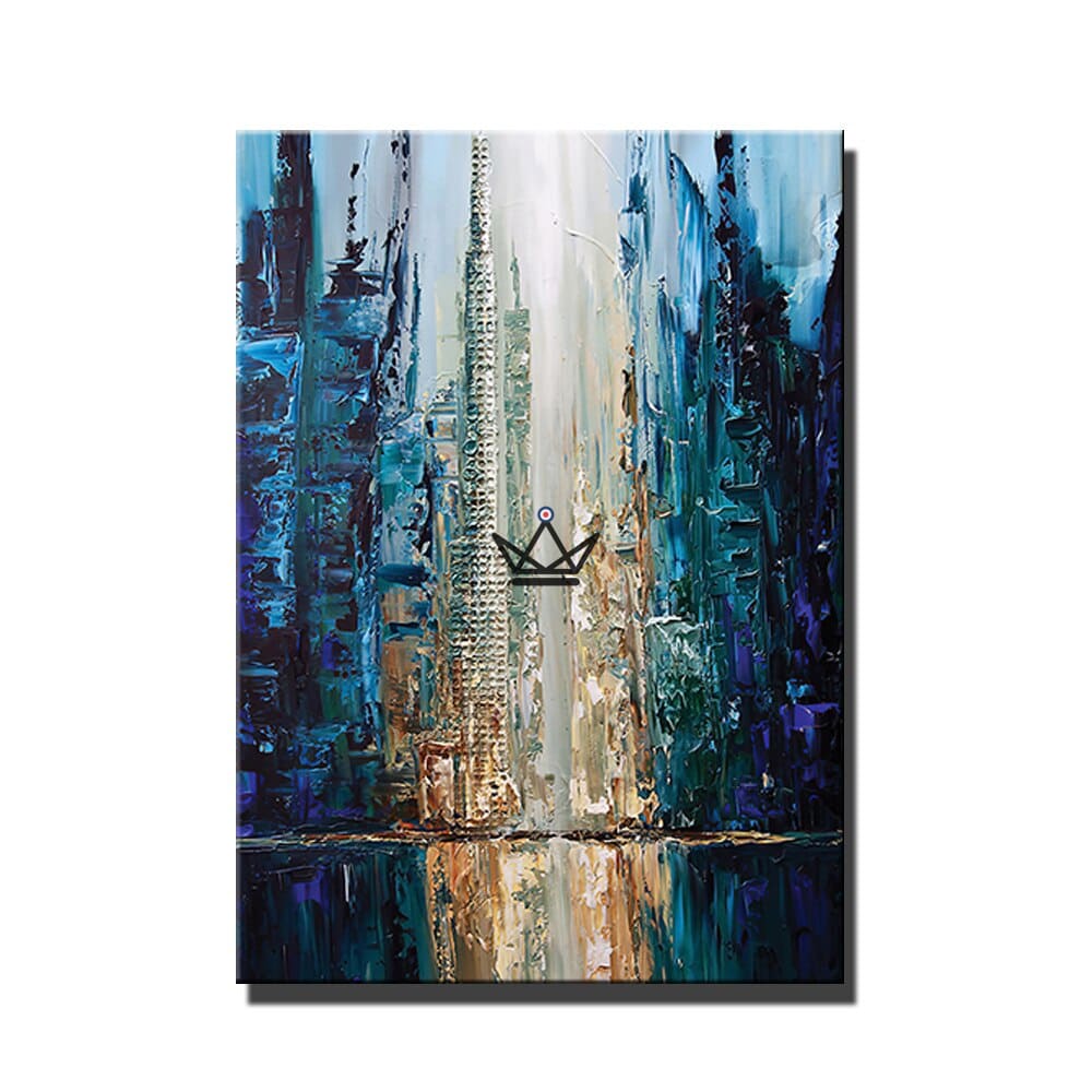 Bringen Sie mit diesem atemberaubenden handgefertigten Ölgemälde auf Leinwand einen Hauch moderner Kunst in Ihren Wohnraum. Dieses abstrakte Leinwand-Wandbild fängt mit seinen klaren geometrischen Formen und lebendigen Farben perfekt die Essenz moderner Architektur ein.