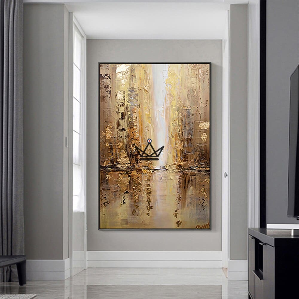 Dieses Gemälde ist in verschiedenen Designs und Größen erhältlich und lässt sich problemlos in jede Art von Einrichtung integrieren, sei es im Büro, in der Bar, im Wohnzimmer oder im Schlafzimmer. Die großzügigen Abmessungen dieses Wandbildes machen es zur perfekten Wahl für größere Räume und verleihen Ihrer Einrichtung einen Hauch von Raffinesse.