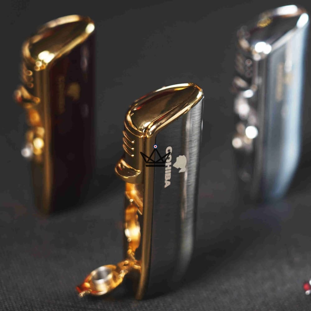 Discover the COHIBA torch lighter 3 HOUDINI torches, a timeless choice. This lighter embodies practicality, solidity and elegance, making it an essential accessory for all cigar lovers.