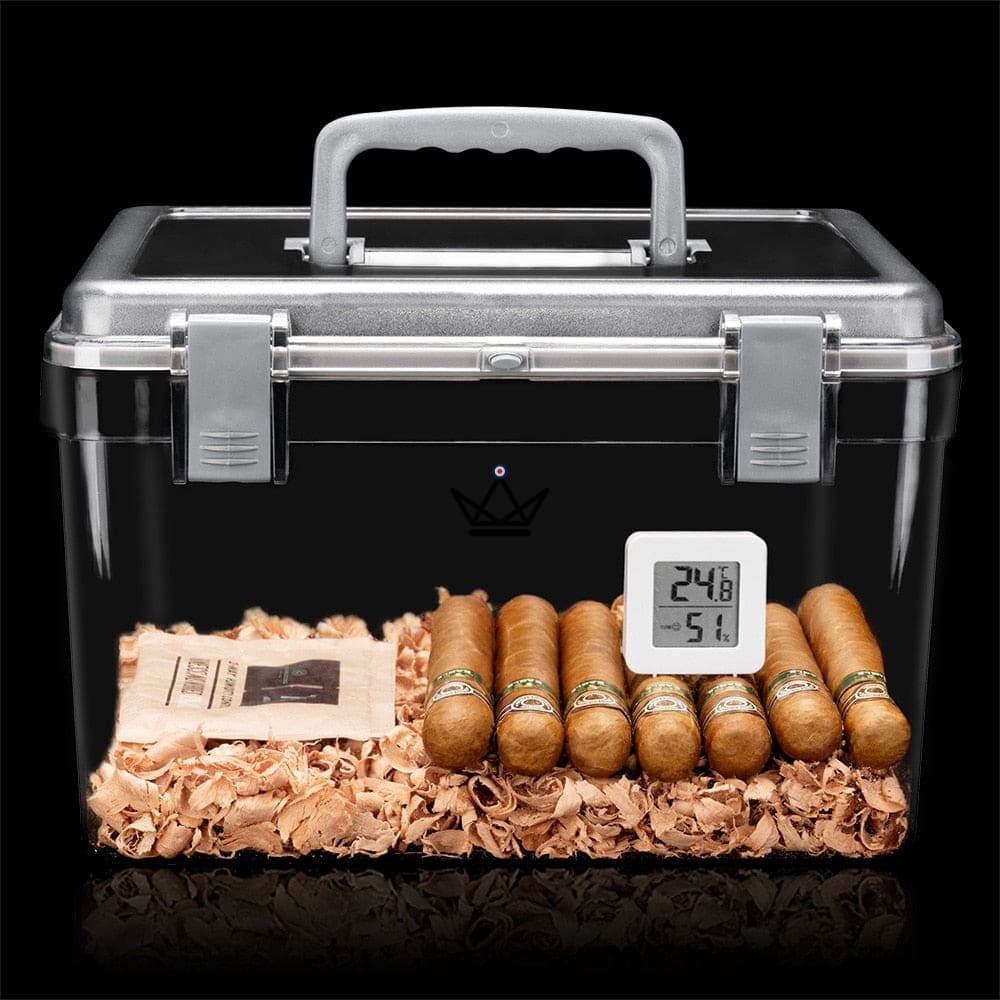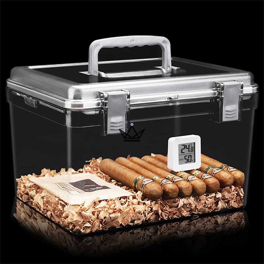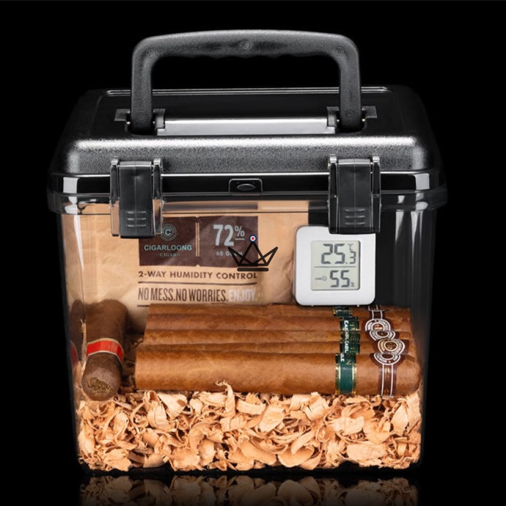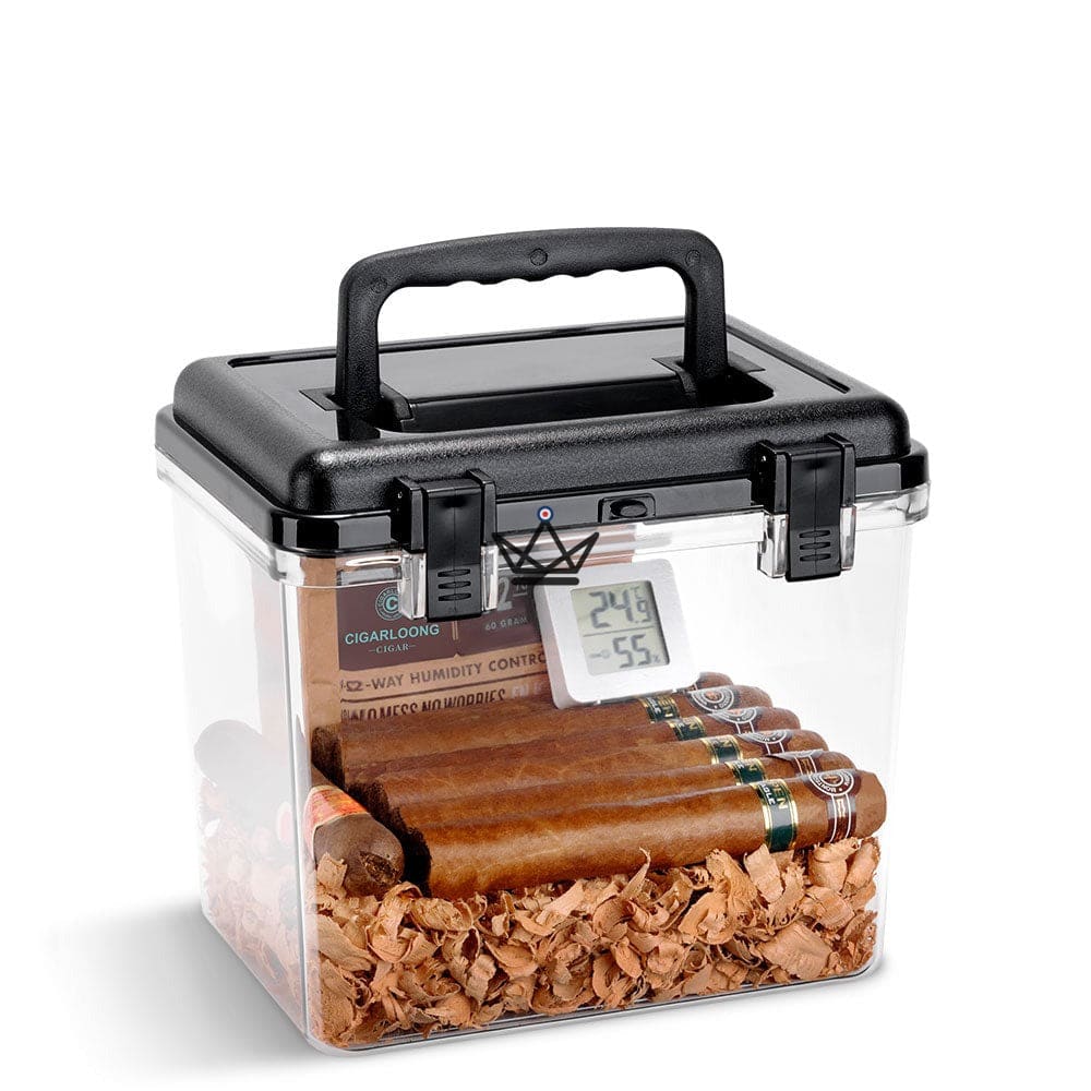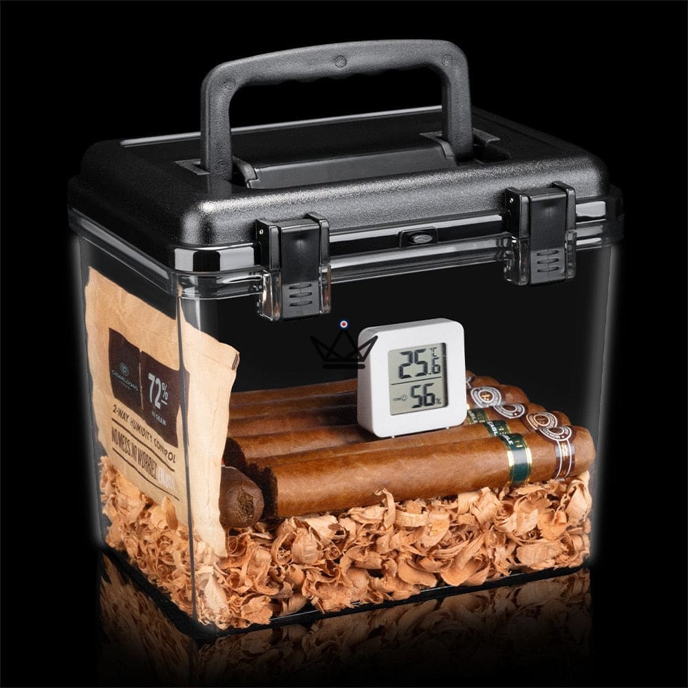 Made from high-quality clear acrylic, this humidor offers a stunning view of your treasured collections. Its capacity varies from 50 to 100 cigars, depending on their size, allowing you to store them in optimal conditions.