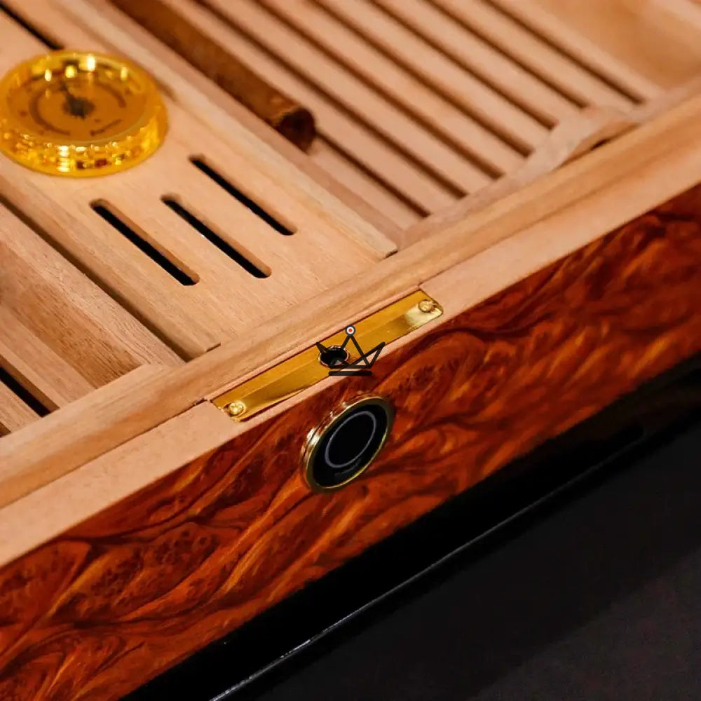 Secure and convenient, this humidor uses an electronic fingerprint lock, ensuring that only authorized users can access your precious cigars.