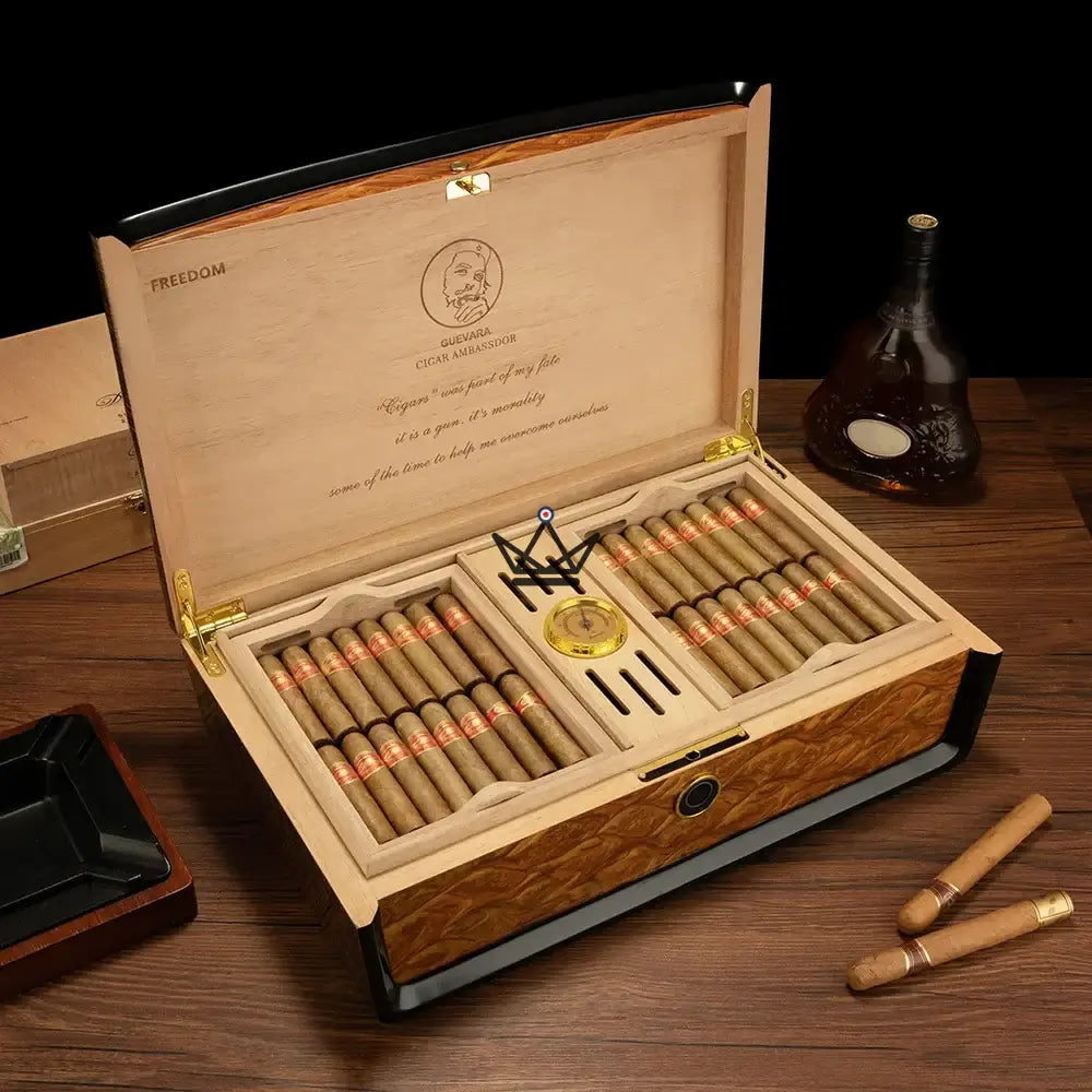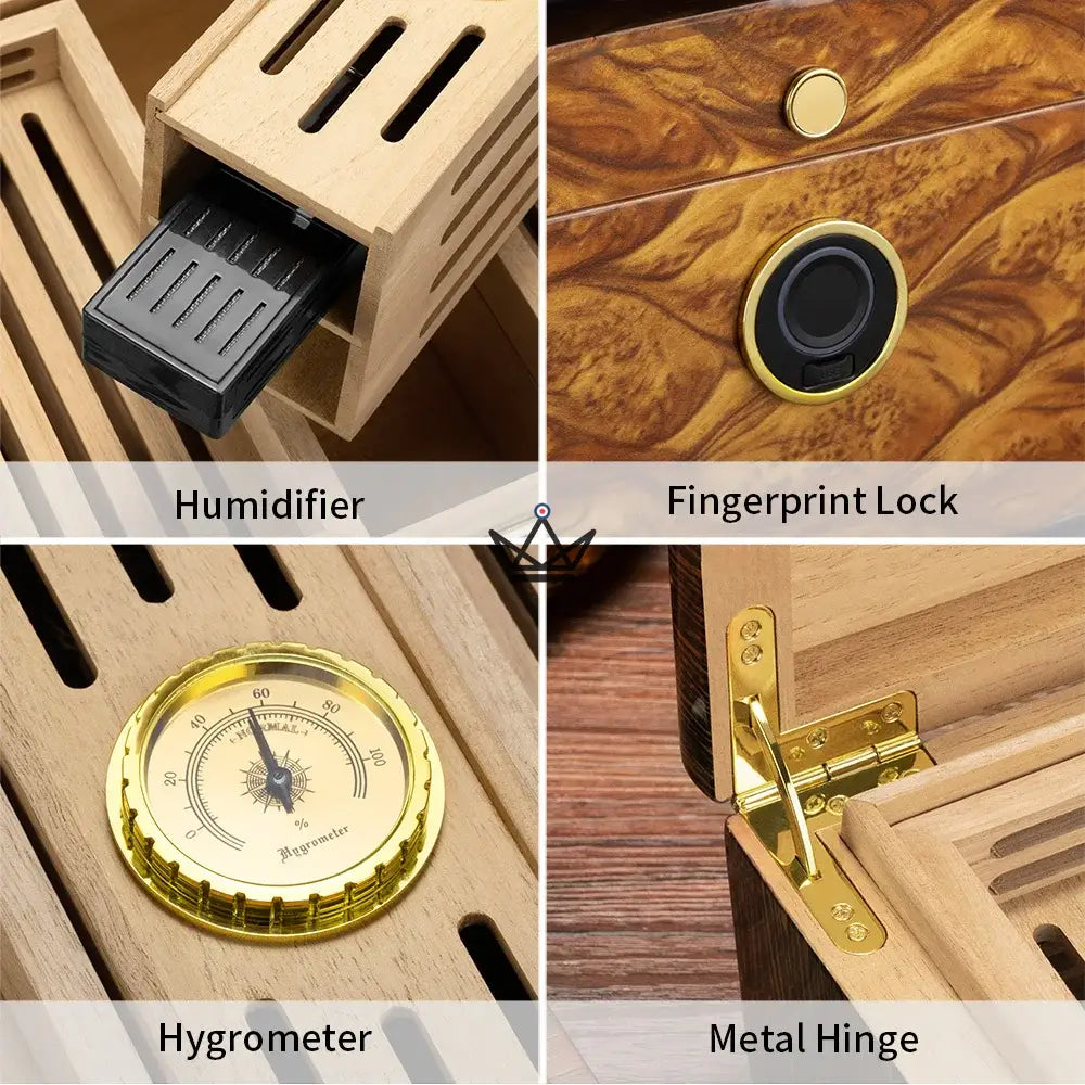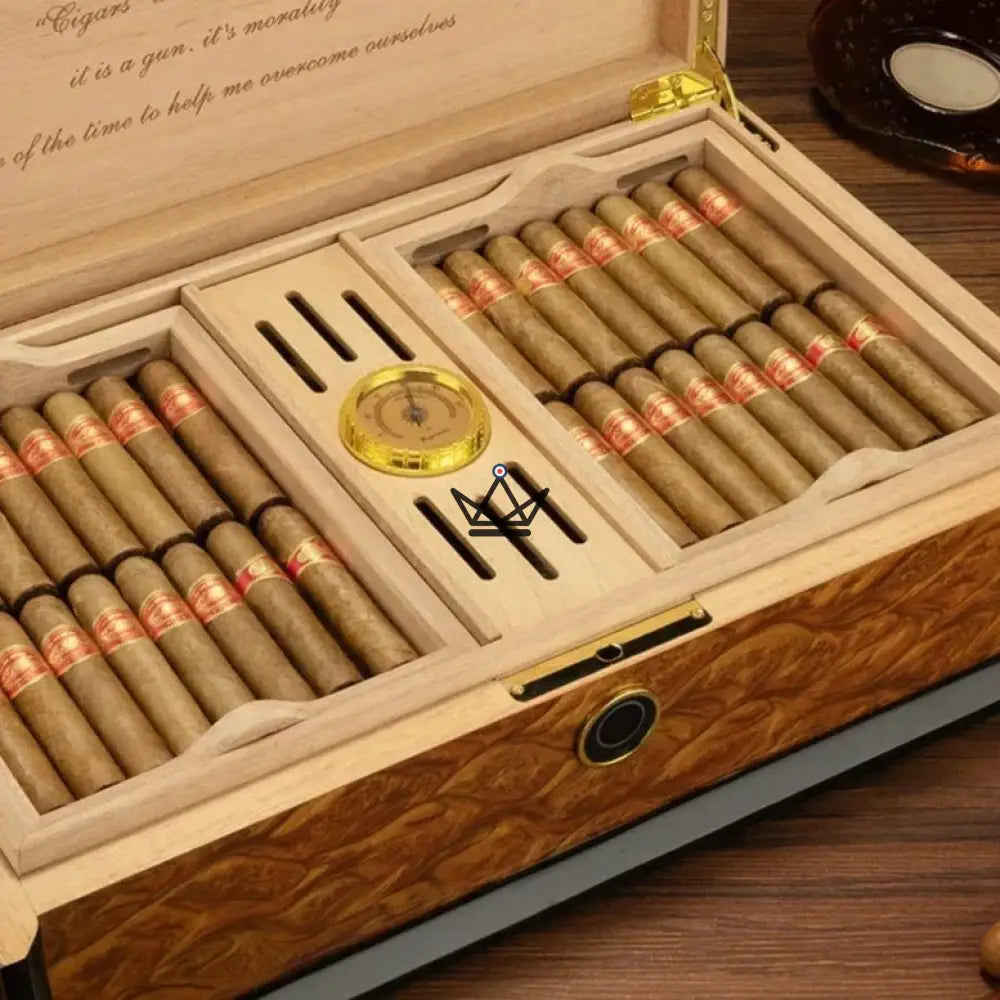 Transform your cigar collection into a true treasure with our Fingerprint Opening Cigar Humidor - GUEVARA Elegance . Designed for demanding cigar lovers, this luxury humidor combines modern technology and quality craftsmanship to offer optimal preservation of your cigars.