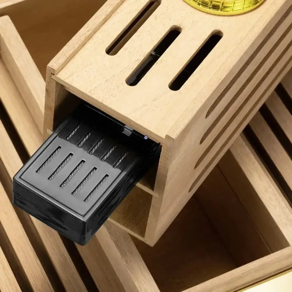 Equipped with a double humidifier and an integrated hygrometer, this humidor allows you to monitor and maintain the ideal humidity level for storing cigars.