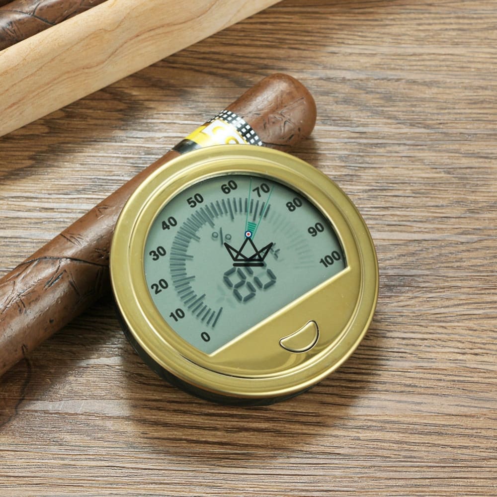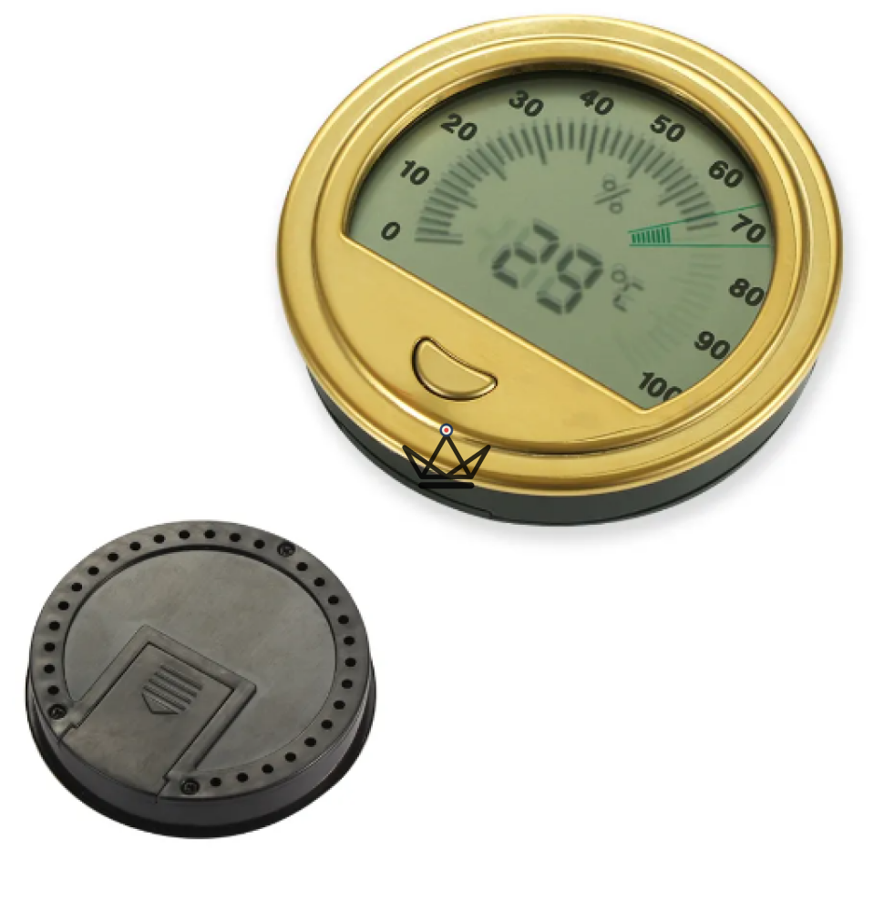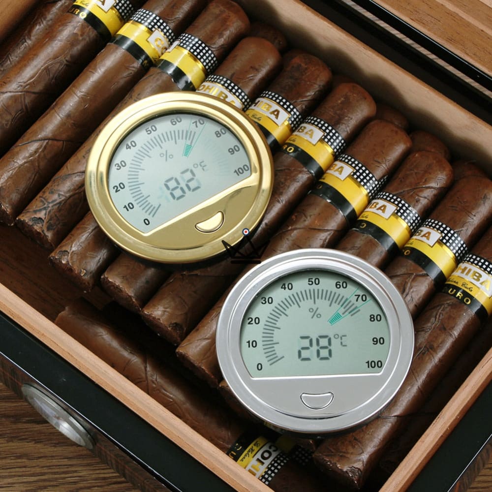 ✦ Elegant Design: Available in elegant gold or silver finishes, this hygrometer adds a touch of sophistication to your cigar accessory collection.