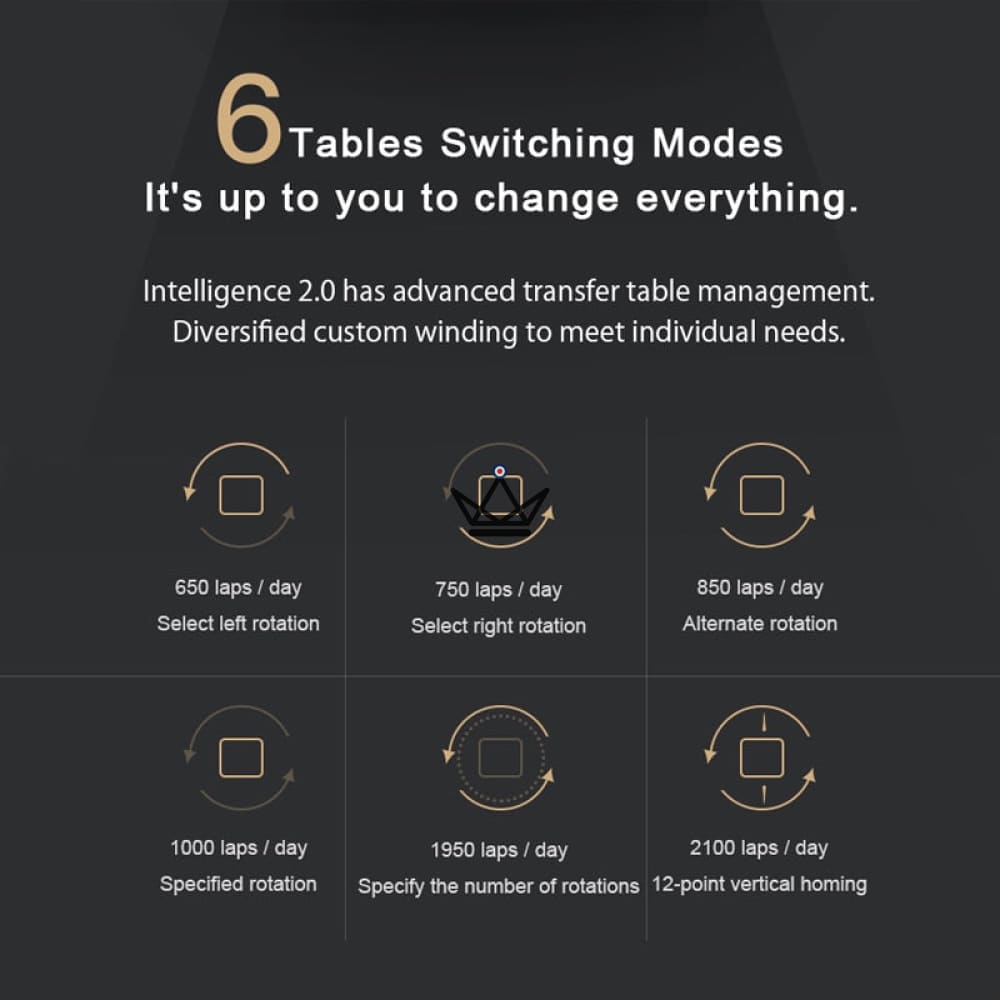 - 6 Programmable Rotation Modes : Adjust rotations between 650 and 2100 turns per day, depending on your watches' specific needs.