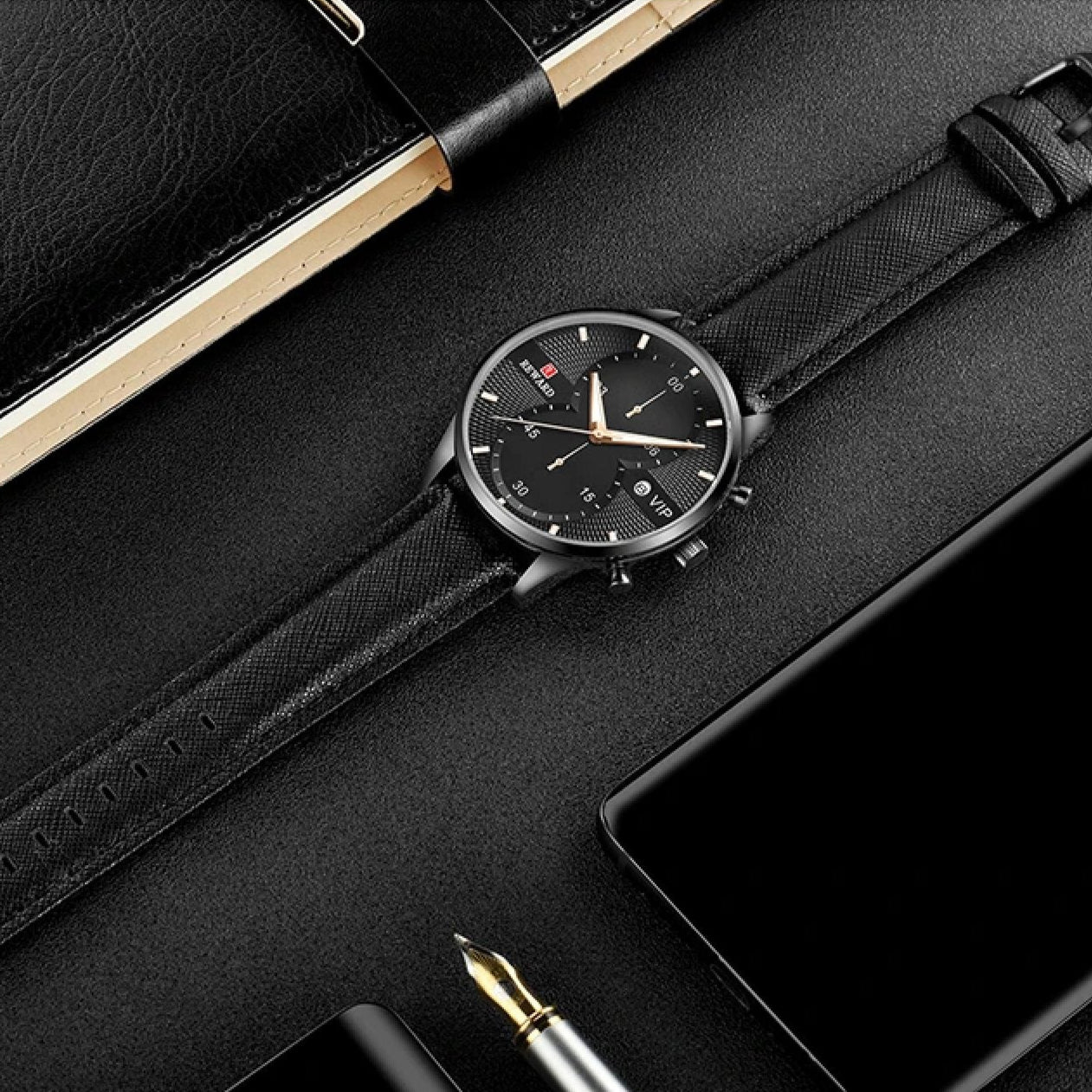 Its leather strap, its remarkable dial and its colored hands adapt perfectly to your style!