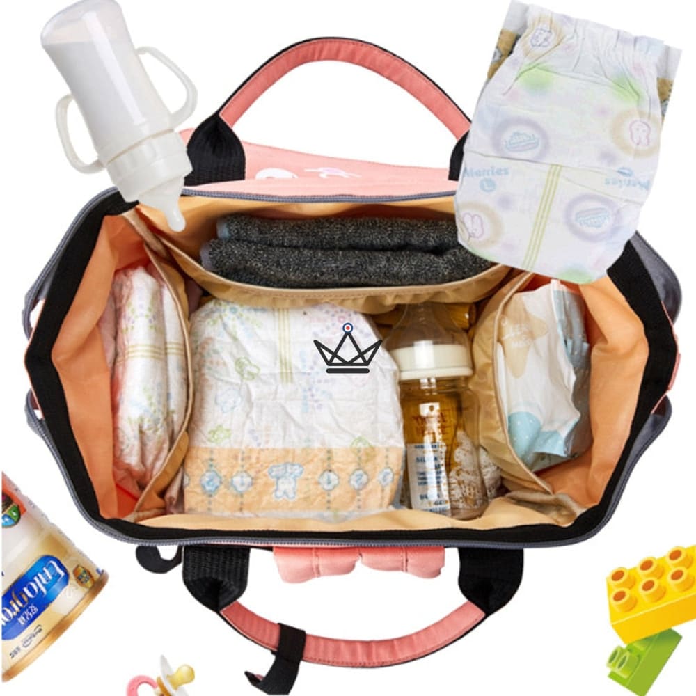 It is made up of several very practical pockets, allowing you to carry everything necessary for your child's well-being (diapers, bottle, towel, toy, etc.)!