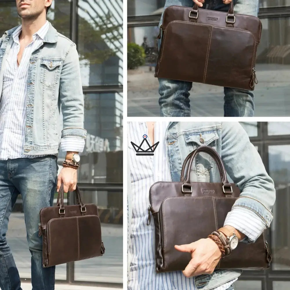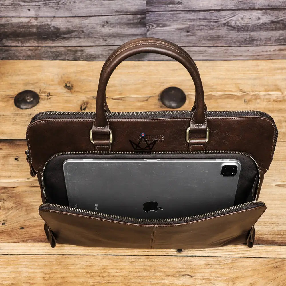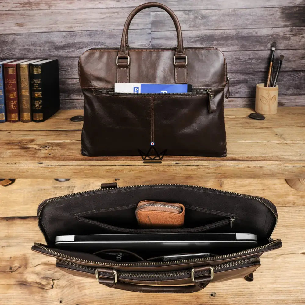 This vintage leather briefcase is more than just a bag for your laptop. It embodies a timeless aesthetic with a modernized design, clean lines and rounded edges. Made from high-quality materials, this bag protects your precious computer and documents in style.