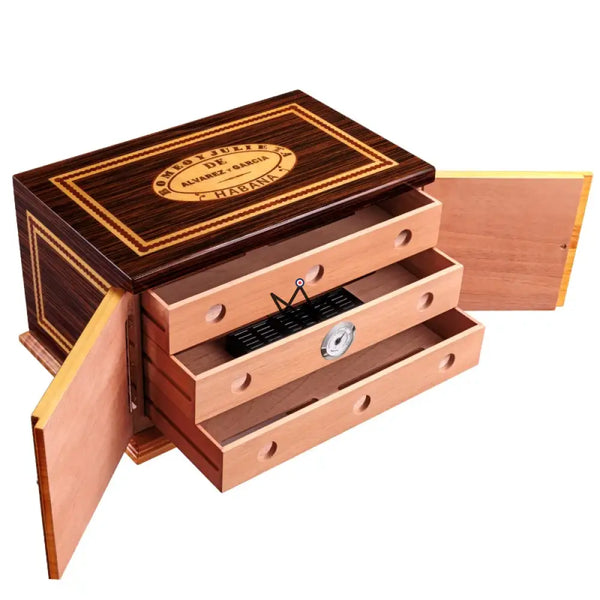With its capacity to hold up to 250 cigars , this humidor offers exceptional storage space while enhancing your interior.