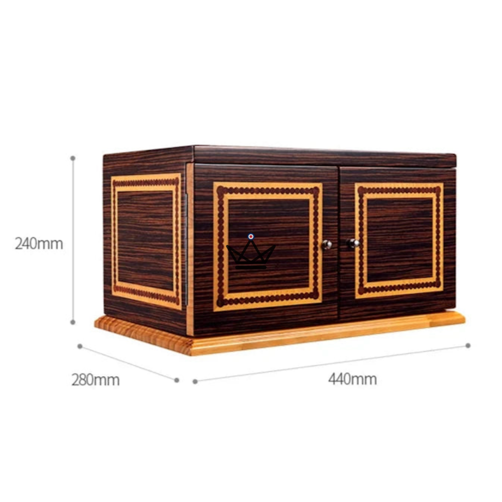 Discover the timeless elegance of the "Imperium Veritatis" humidor, a centerpiece designed for the most discerning cigar lovers. Crafted with unparalleled care, this humidor combines noble wood finishes with an elegantly detailed structure, reminiscent of traditional craftsmanship and modern luxury.