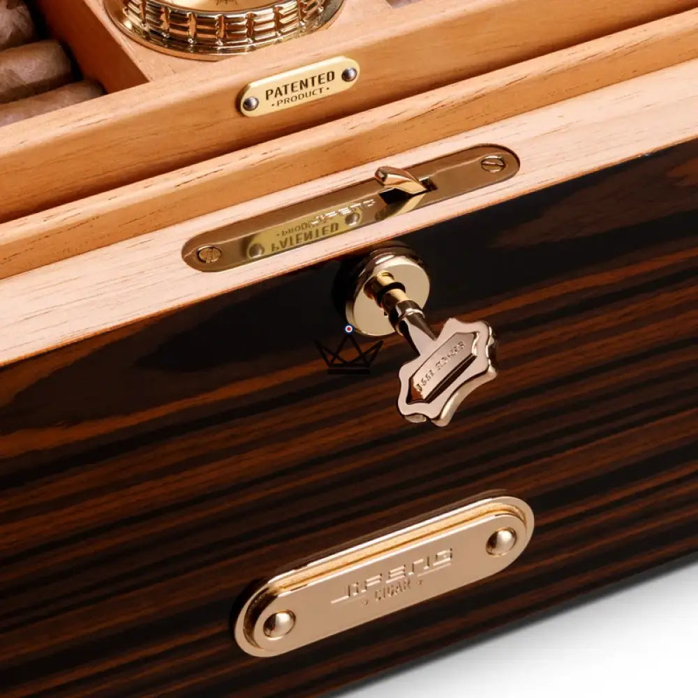The Cigar Humidor – Majestatis Doublis embodies the essence of luxury and sophistication, designed to preserve and magnify up to 120 cigars . With its refined design, this humidor perfectly combines timeless elegance with modern functionality.