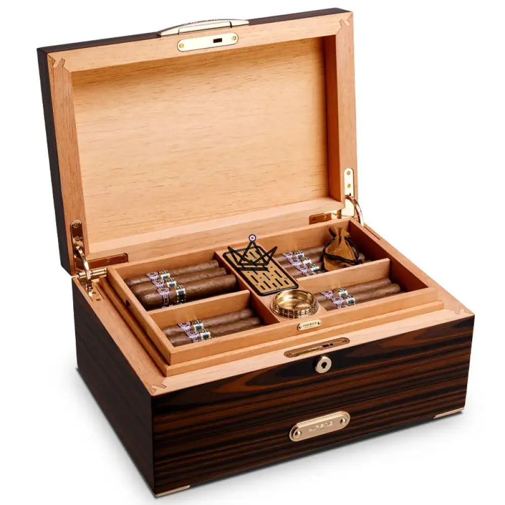Every detail has been carefully thought out to provide an unparalleled conservation experience, while making this humidor a true work of art. To ensure optimal conservation, this humidor is equipped with a built-in high-precision hygrometer, as well as a cedar wood humidifier, allowing you to maintain an ideal environment for your cigars.