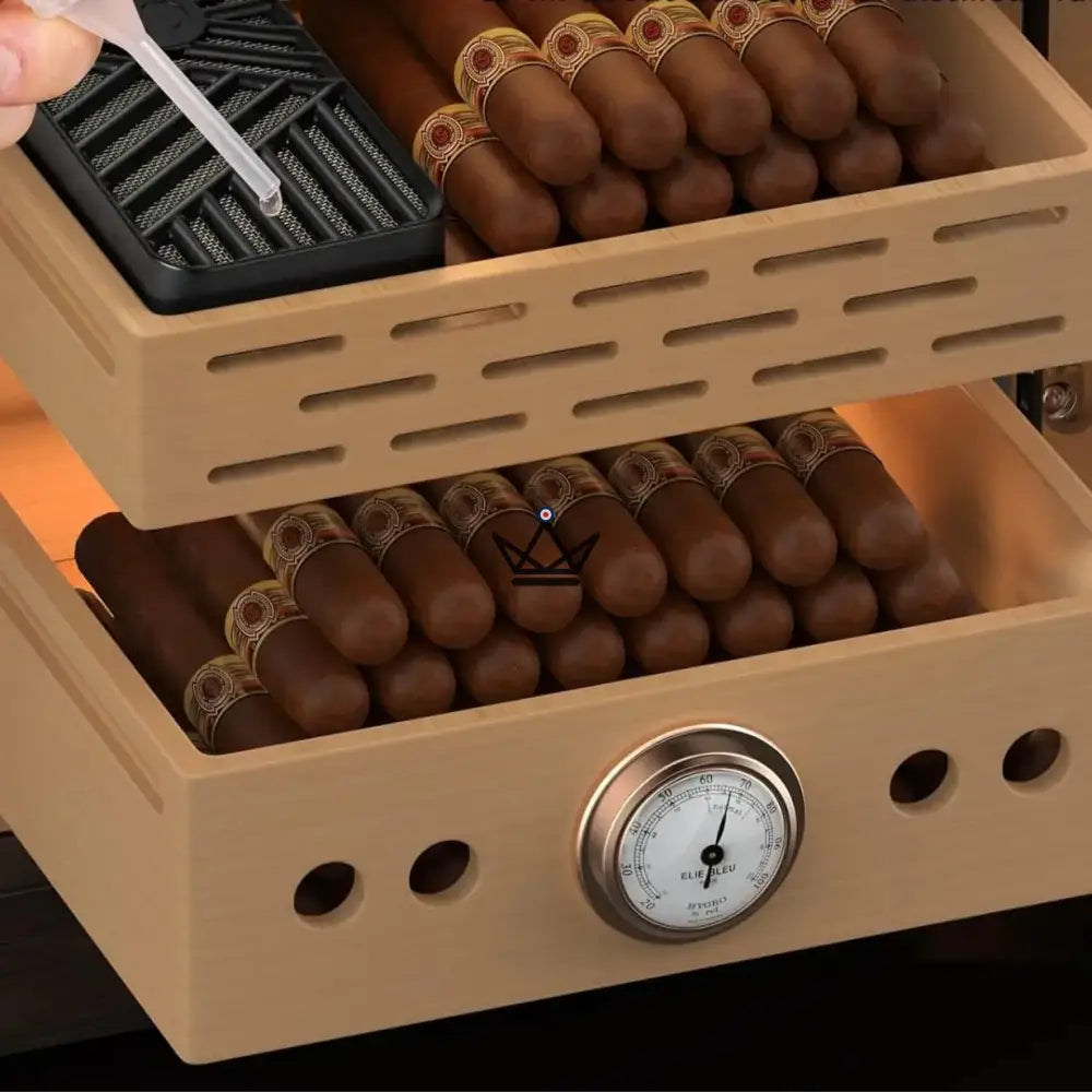 • Generous capacity : Holds between 100 and 150 cigars depending on their size (robusto, torpedo, corona, etc.).