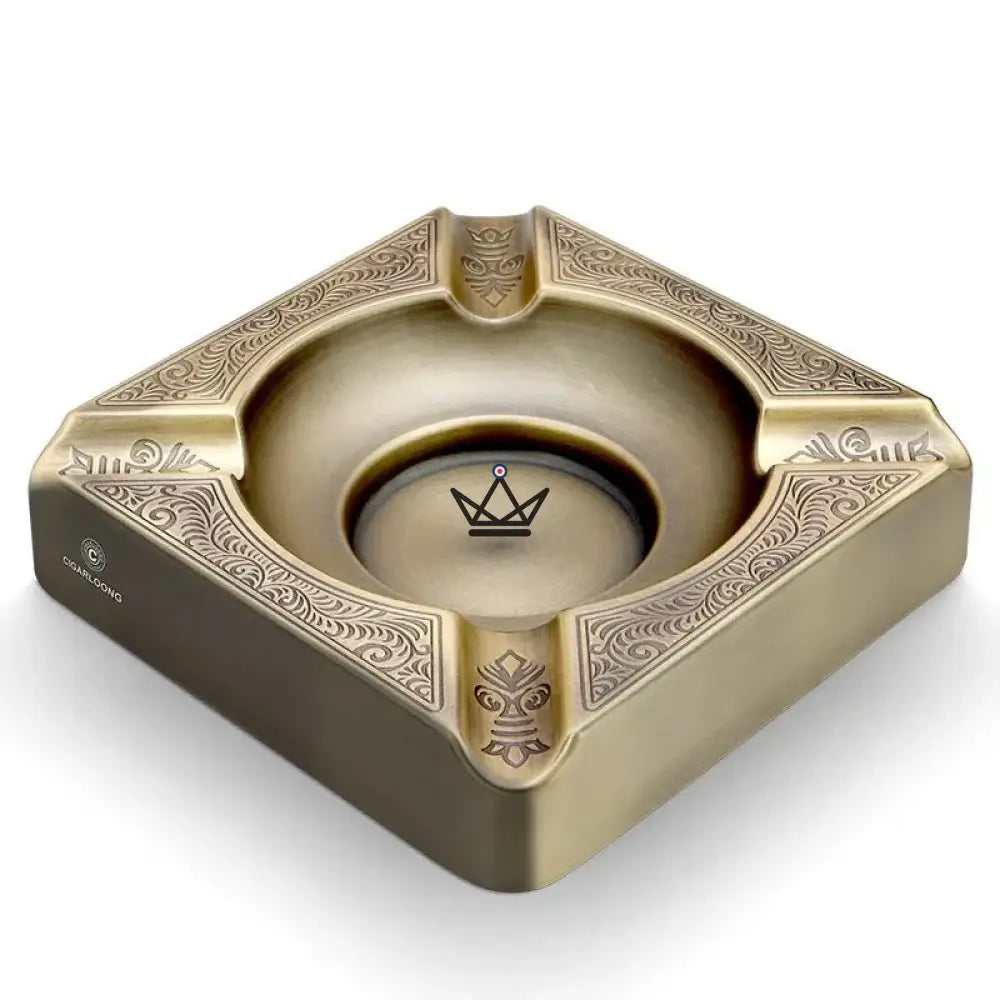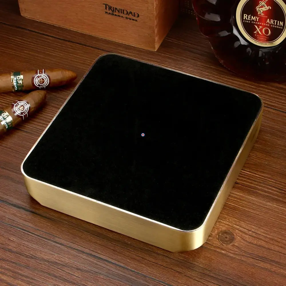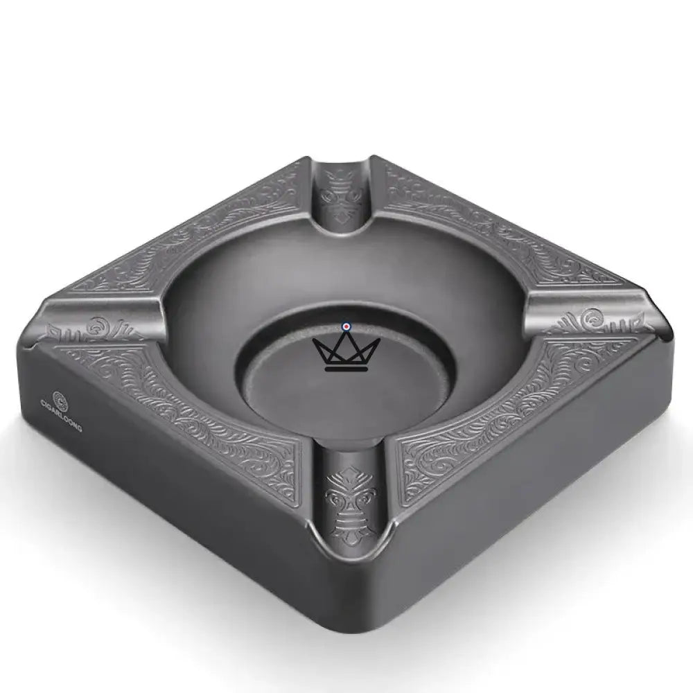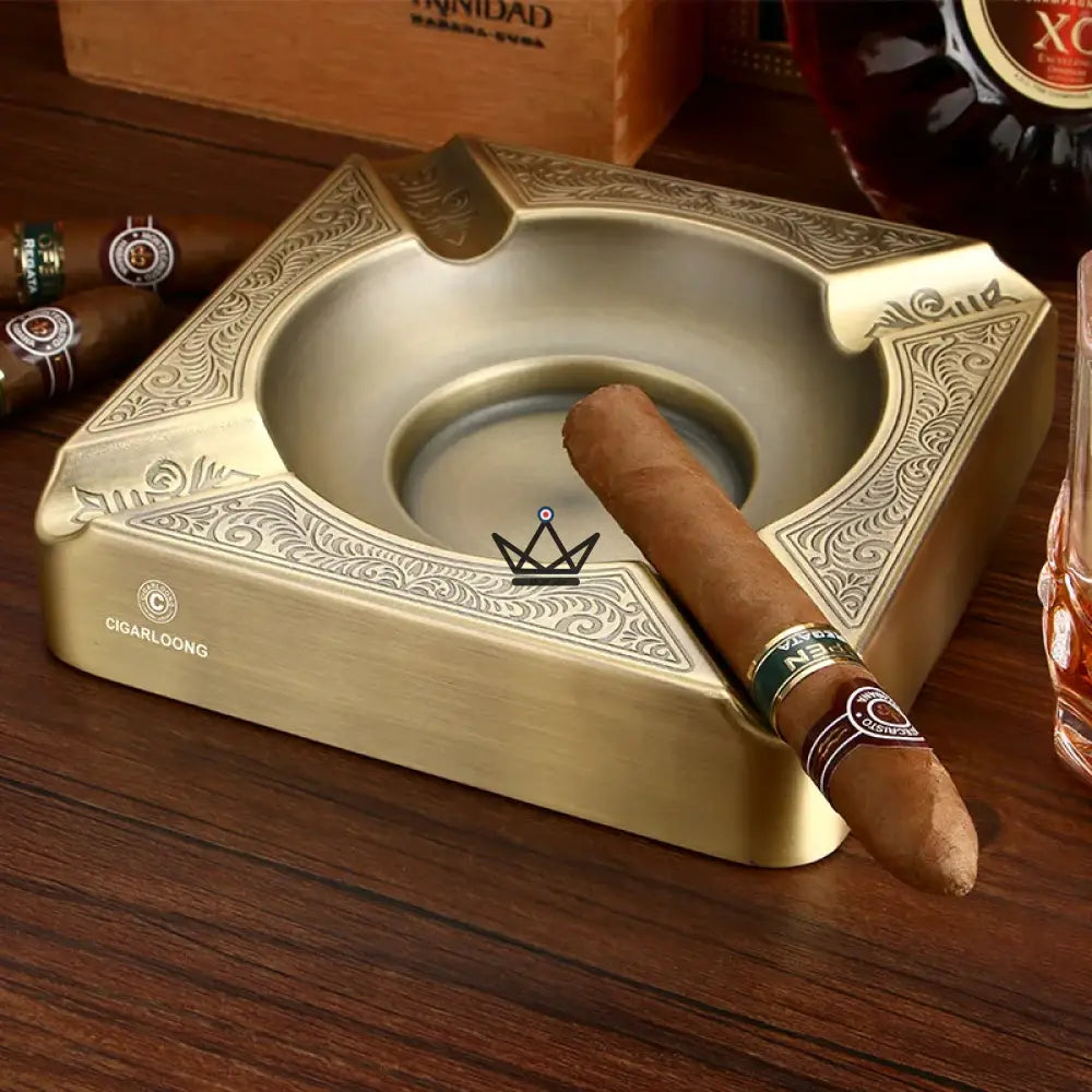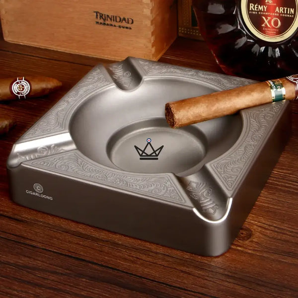 This high quality cigar ashtray combines elegance and functionality, ideal for the home, office or cigar club. Made of titanium, it is durable and scratch resistant. Its retro Cuban square design, adorned with engraved patterns, adds a touch of sophistication to your space.