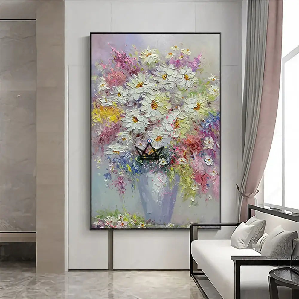 Transform your interior with the Éclat Floral Collection , an exclusive series of hand-painted canvases dedicated to flowers. Each canvas is made to order, offering a unique and personalized touch to your decoration. With several sizes available, ranging from 40 × 60 cm up to 140 × 220 cm, these canvases adapt to all spaces. Here are the five variations of this floral collection: