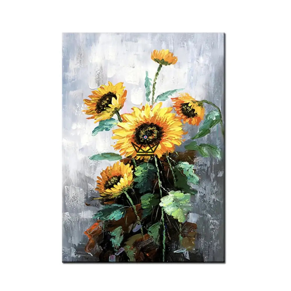 Radiant Sun : A bouquet of vibrant sunflowers, capturing the warmth and vibrancy of summer. This painting brightens any room with its palette of vibrant yellows and greens.