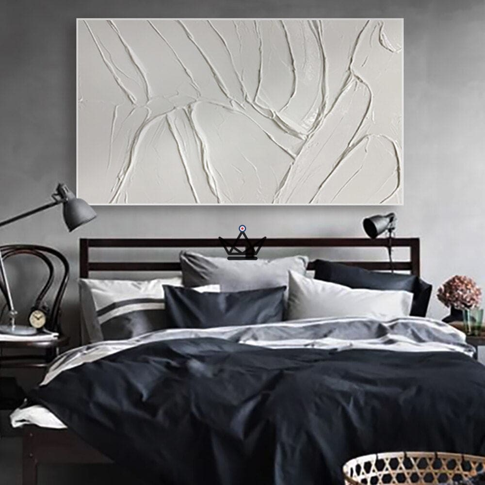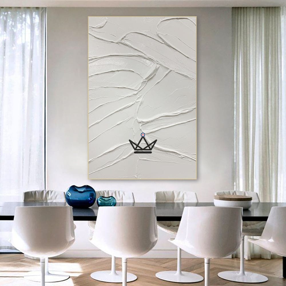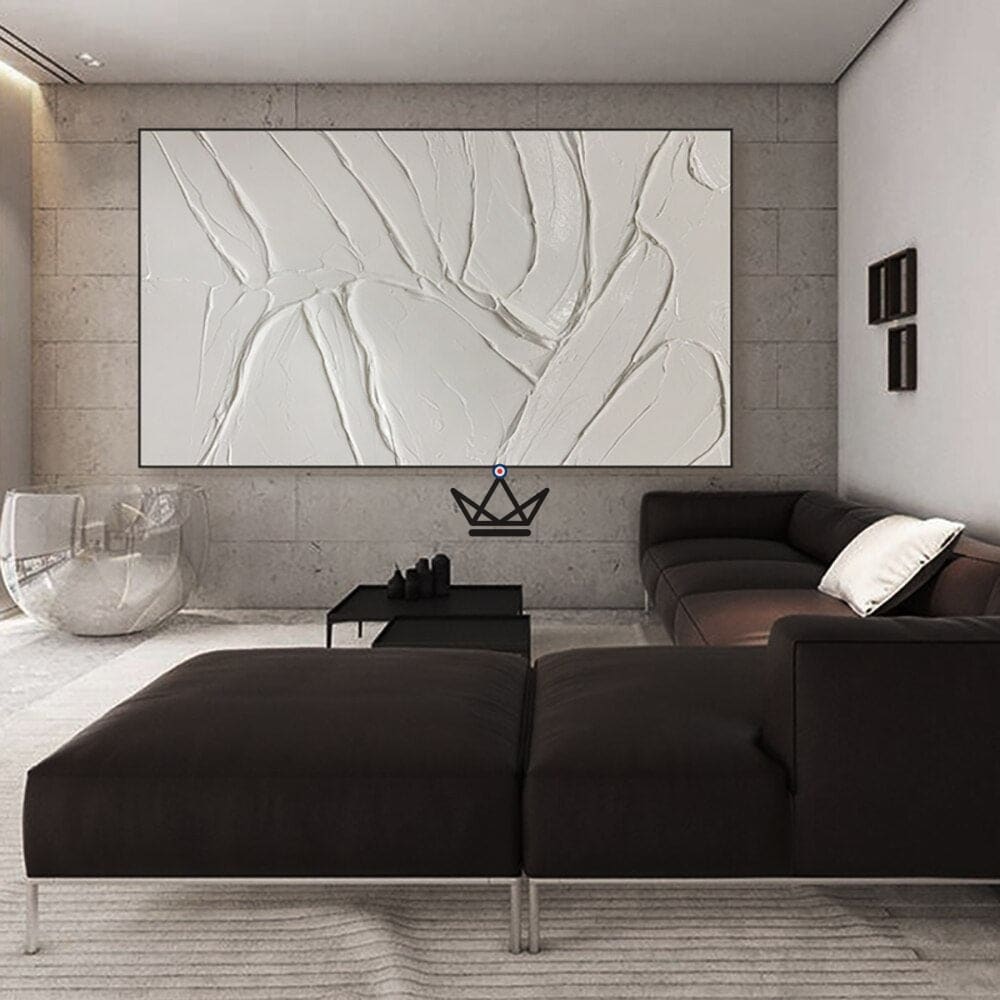 Transform your living space with this modern thick canvas wall painting. This handmade artwork is painted in solid white oil, with an abstract, modern style that will bring a unique touch to your home decor.