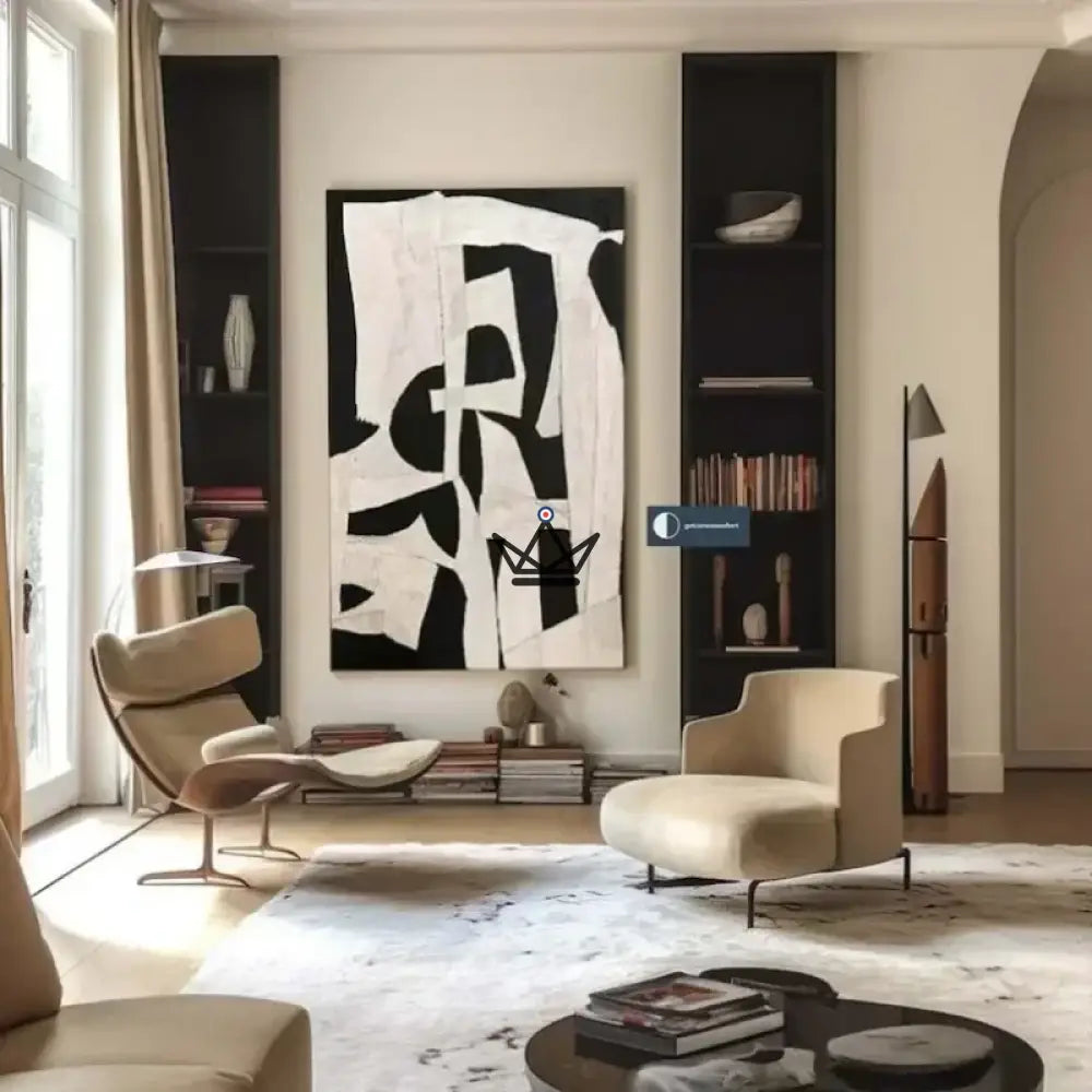 Bring a touch of contemporary elegance to your interior with the "Monochrome Abstraction" collection. These minimalist works of art are perfect for modern spaces, adding an artistic and sophisticated dimension to your decoration.